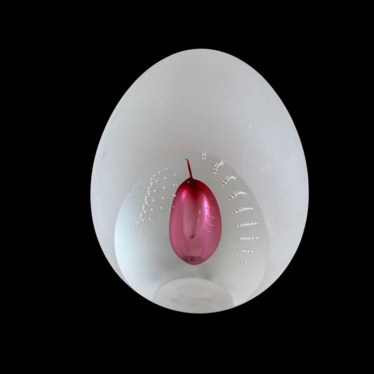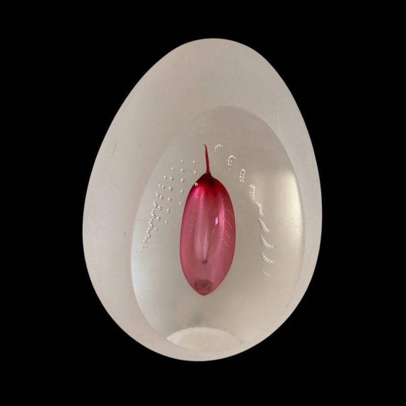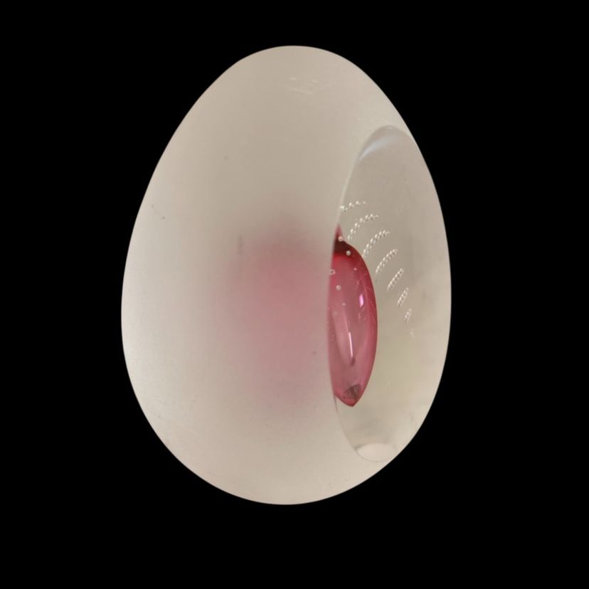 Delightful frosted glass with a hint of pink egg shaped paperweight, No chips or cracks, a few small scuffs on the frosted glass. 2.25x3.5”
