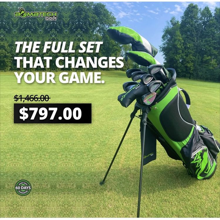 This is a very nice set of Golf Clubs from Bombtech. The irons are 4-9 (Missing PW) with reg. flex steel shafts. This set also includes 3 wedges (52, 56 & 60 degree) also with Steel shafts. Bombtech 4.0 Driver & 3 Wood with Graphite Reg. flex shafts. With a Bombtech Mallet putter. All clubs have original Bombtech grips. These clubs are almost new with very minimal ware (set does not include bag). Please message with any questions. Thanks for looking!