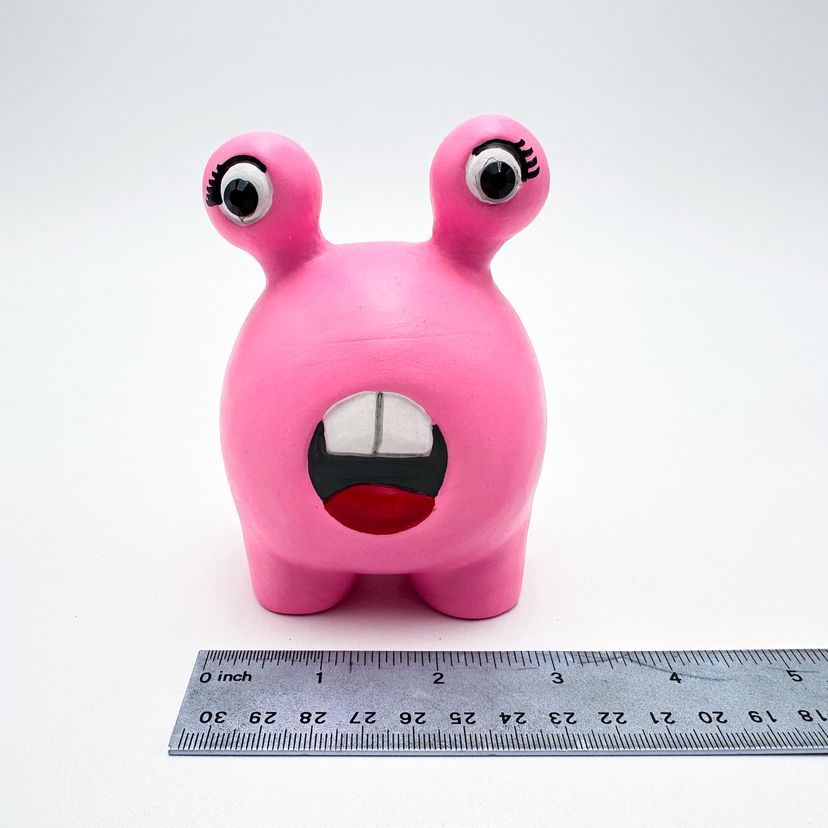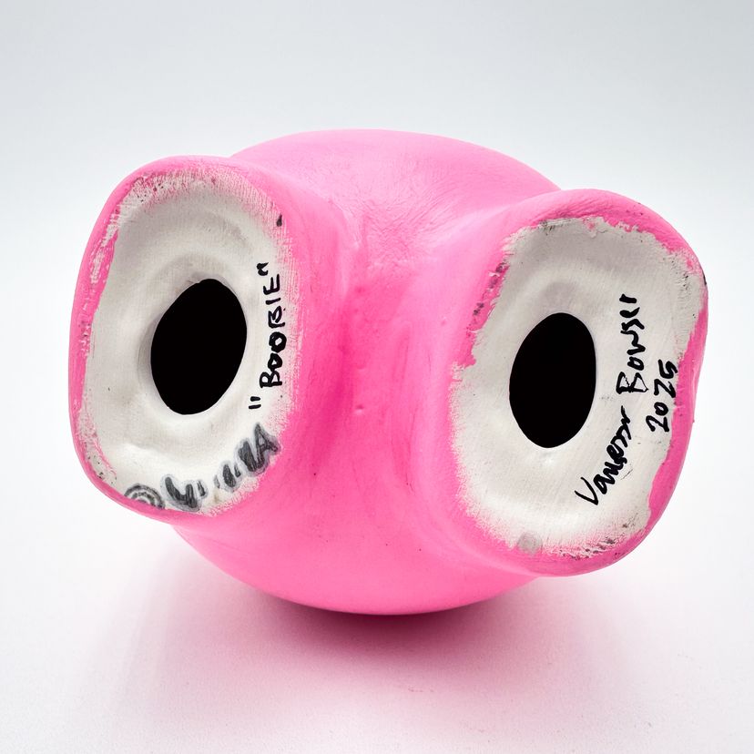 New, hand painted condition, see all photos Ceramic form, hand painted by me Acrylic paint, sealed, acrylic gem eyes Signed by me and named "Boobie" in honor of breast cancer awareness