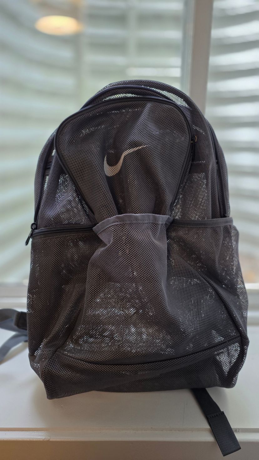Features 18" H x 12" W x 7" D Two main compartments with zip closure Padded, ergonomically shaped shoulder straps Side pockets Swoosh logo at front Polyester