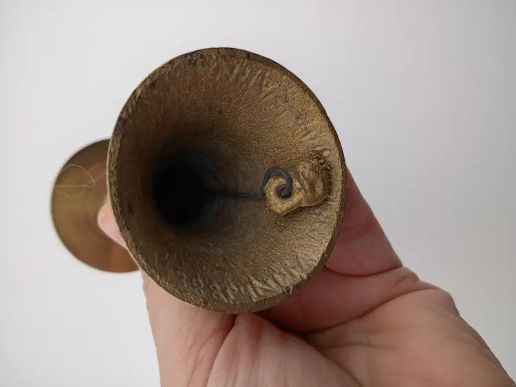 This is a very cool piece -- a twofer. It's a candlestick and a bell with a great modern design. It's made in India and in excellent condition.