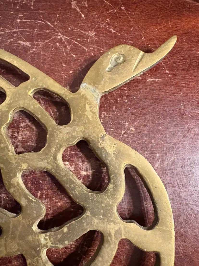Brass Duck/Goose Trivet, Orange Design
