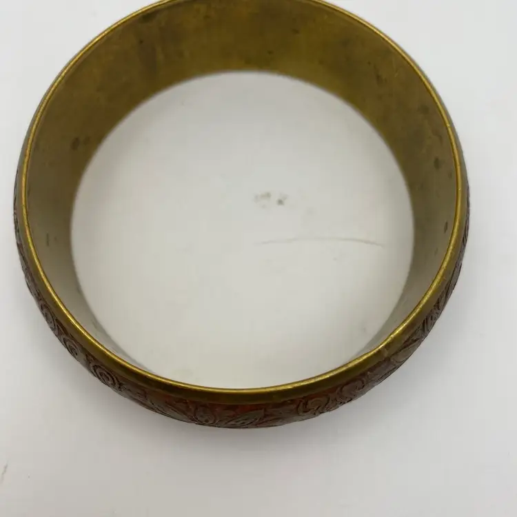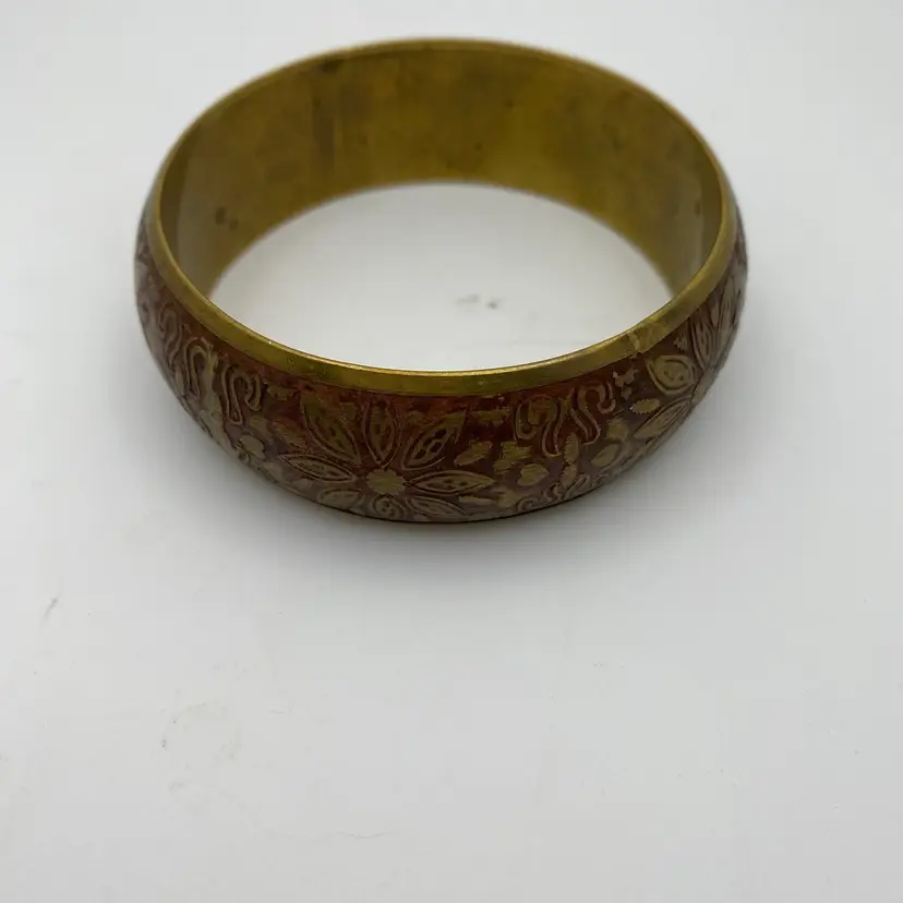 Brass Floral Inlay Bangle Bracelet 2.5 in diameter