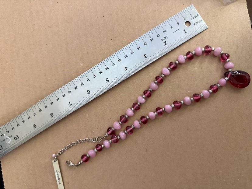 Measures approximately: adjustable clasp - 16-18” Teardrop pendant is 1”