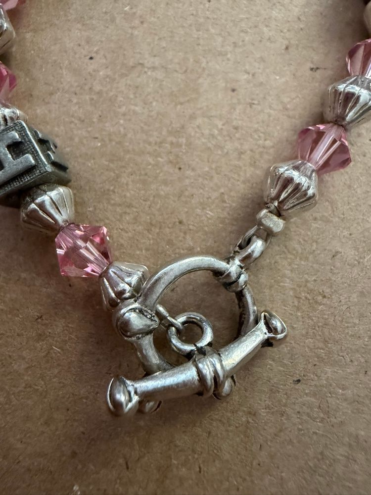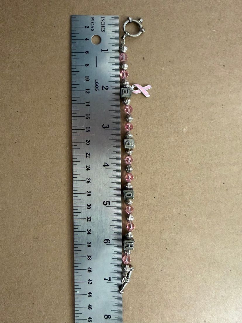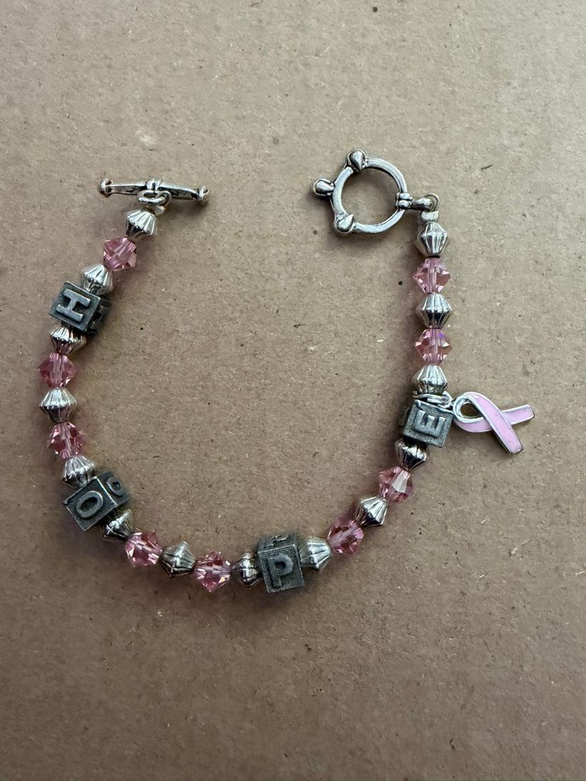 Breast Care Awareness Bracelet Pink And Silver Tone