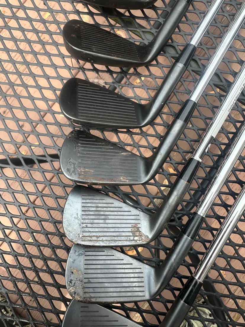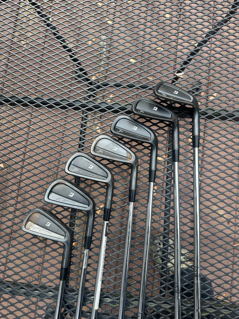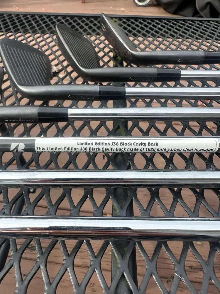 Acquired Bridgestone J36 limited edition iron set 4-P. They were in the plastic left in someone’s basement. I took the plastic off it looks like some water oxidized the carbon finish and surface rusted them a little bit.