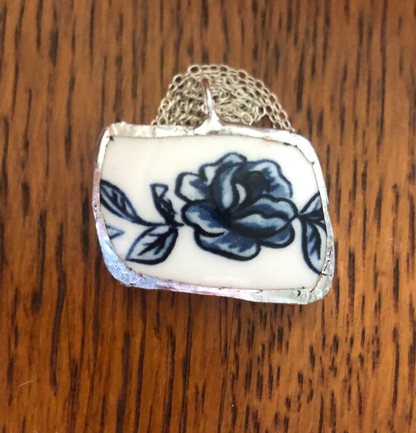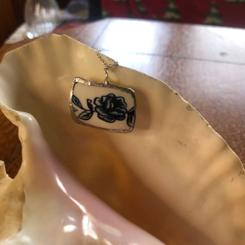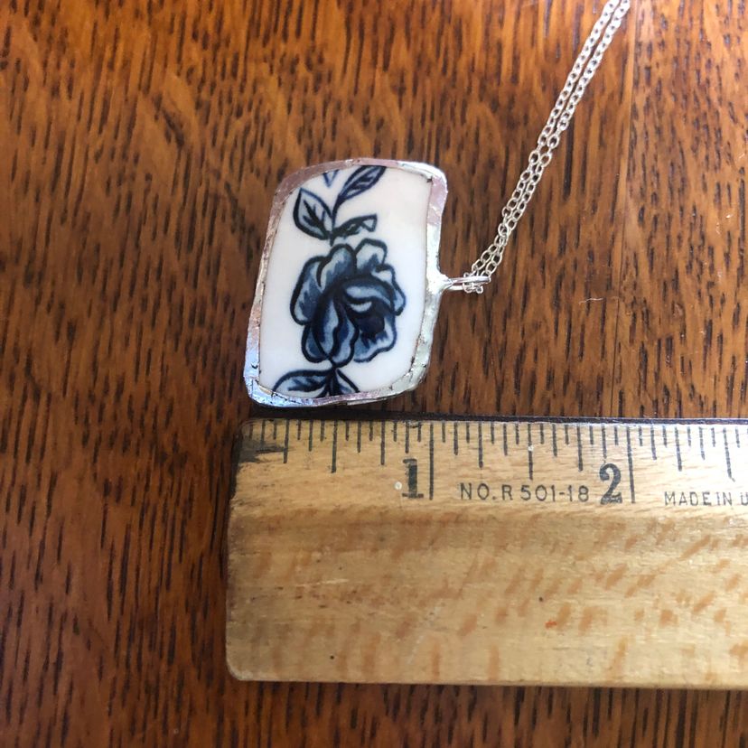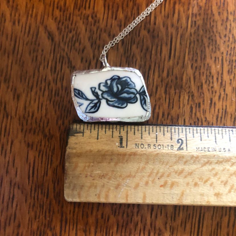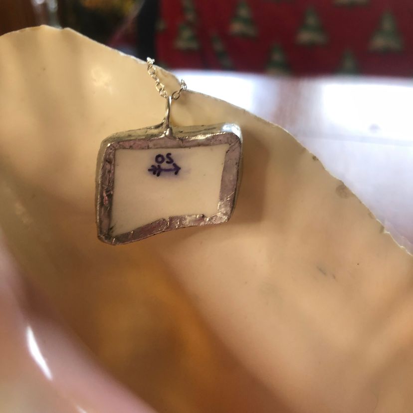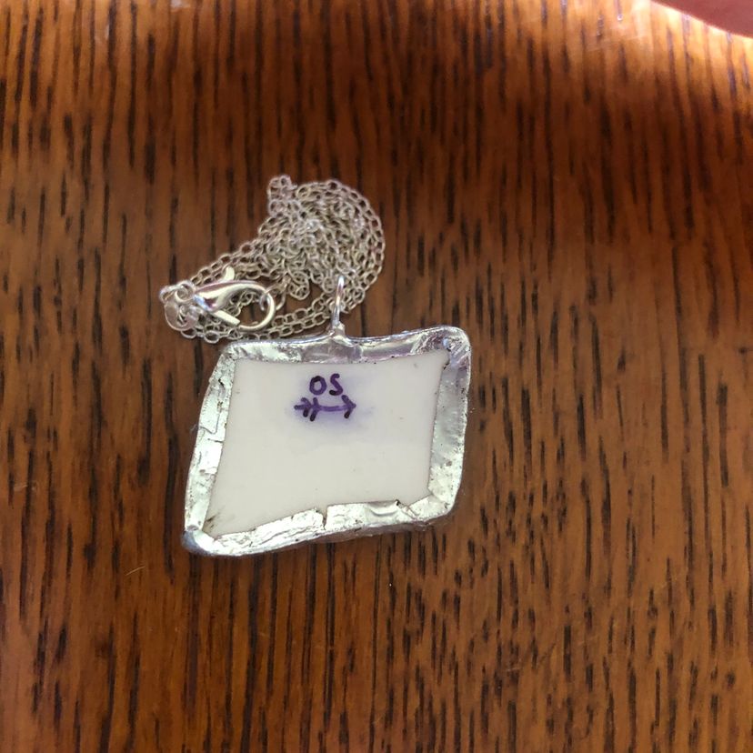 Turn your style into a conversation starter with this quirky pendant made from a piece of a broken Molly Hatch mug. Handcrafted and one-of-a-kind, this necklace measures 1 3/8 by 7/8 inches and adds a splash of playful charm to any outfit. Perfect for those who love art with a twist and personality that shines through every crack!