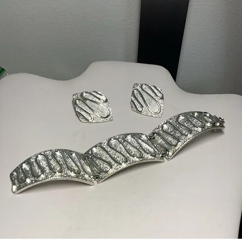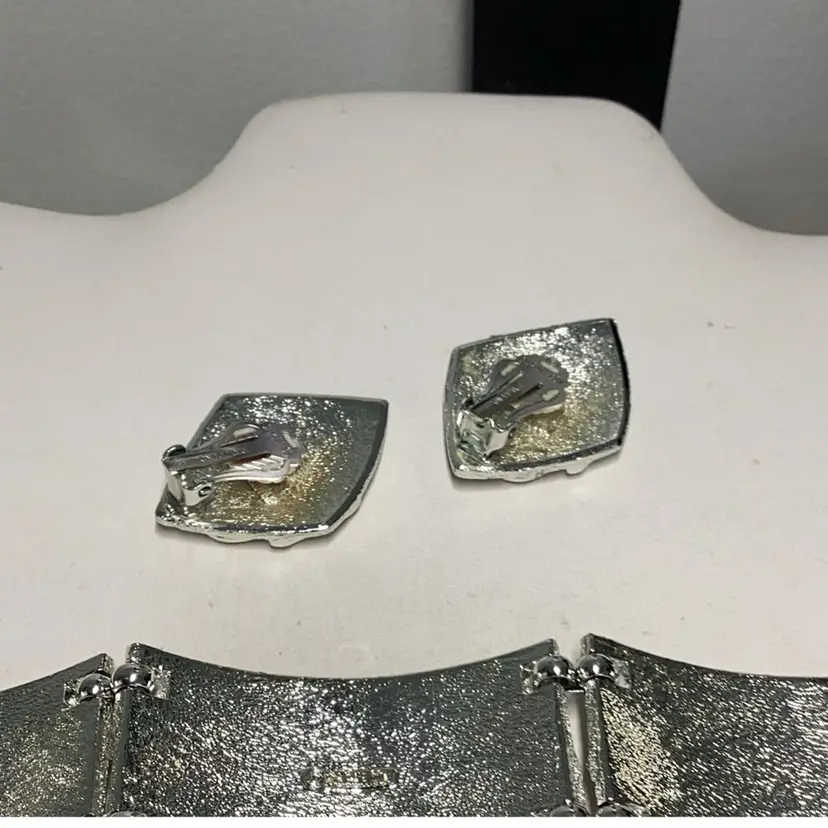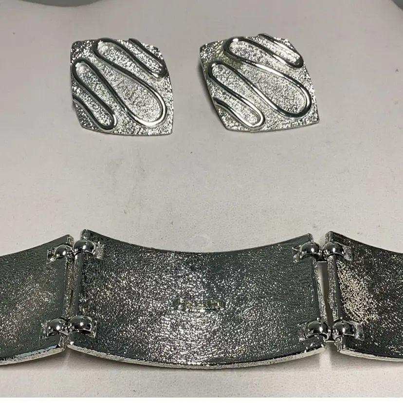 Brutalist Bracelet 7” & Matching Earrings 1 1/4” - Sarah Conventry 1960’s