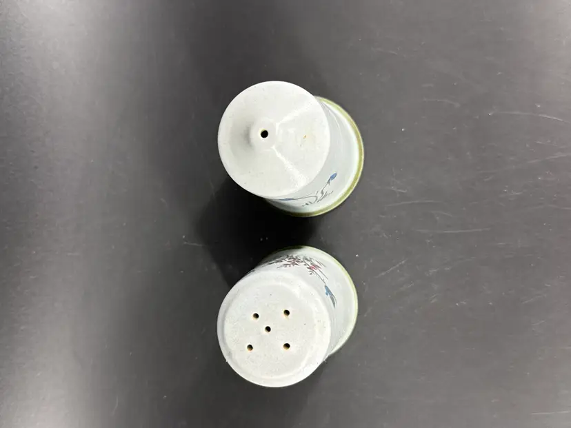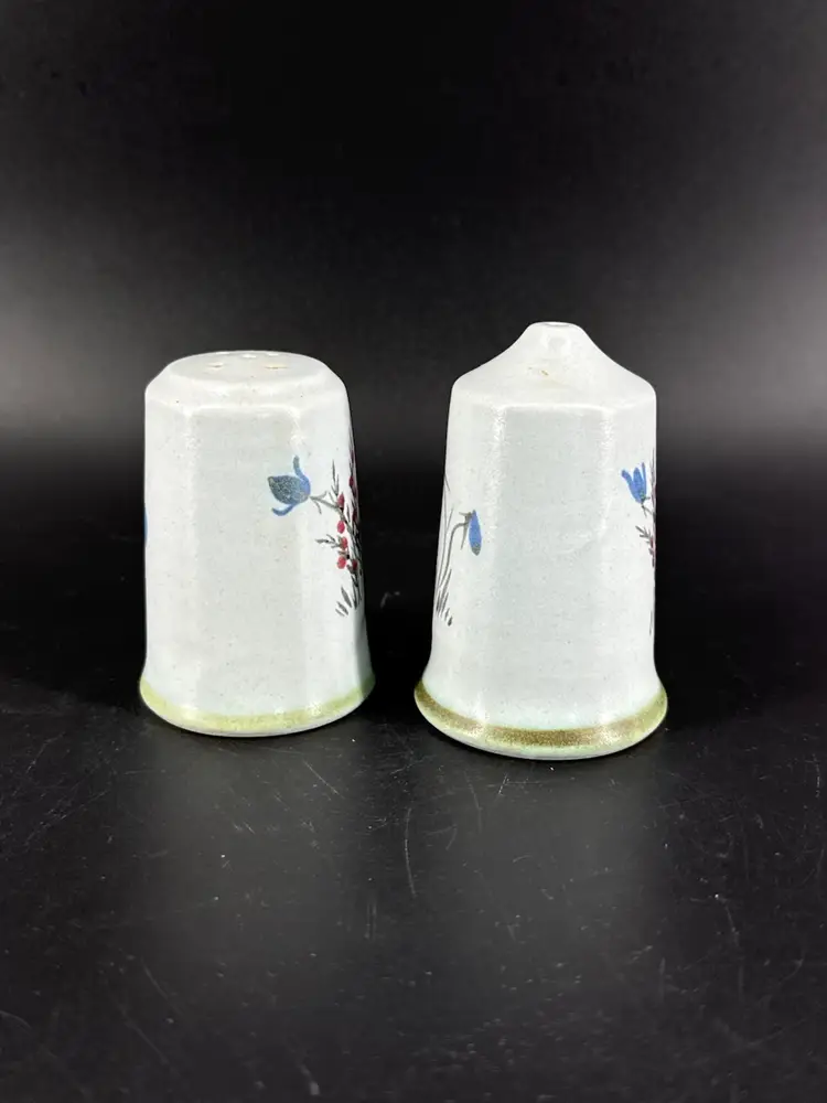 They are 3" tall and measure 2" in diameter. They are in excellent condition. There are no cracks, breaks, chips or repairs. (See photos).