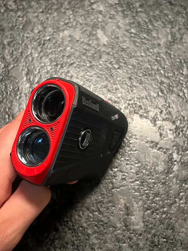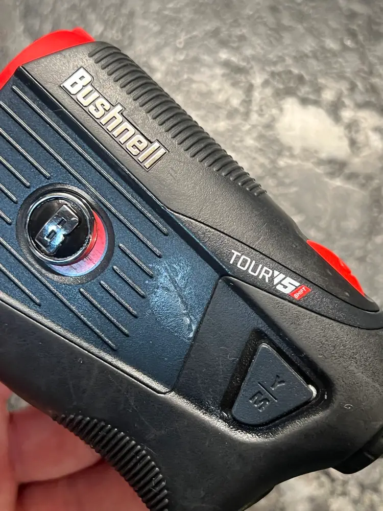 This amazing range finder allows you to shift it into a slope capability mode! Magnetic strip for club / cart connection… perfectly functioning with a full battery!