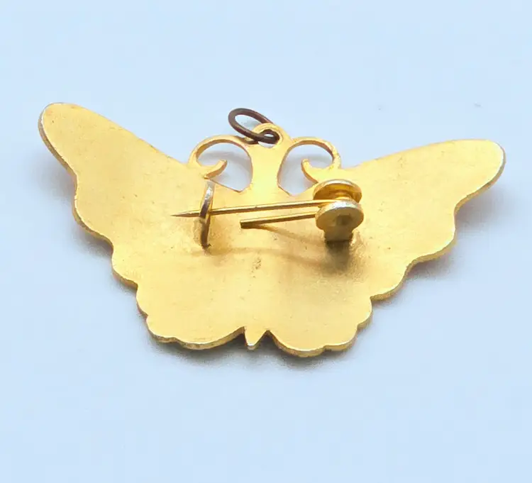 Vintage red and black enameled gold tone piece that can be a pendant or a pin