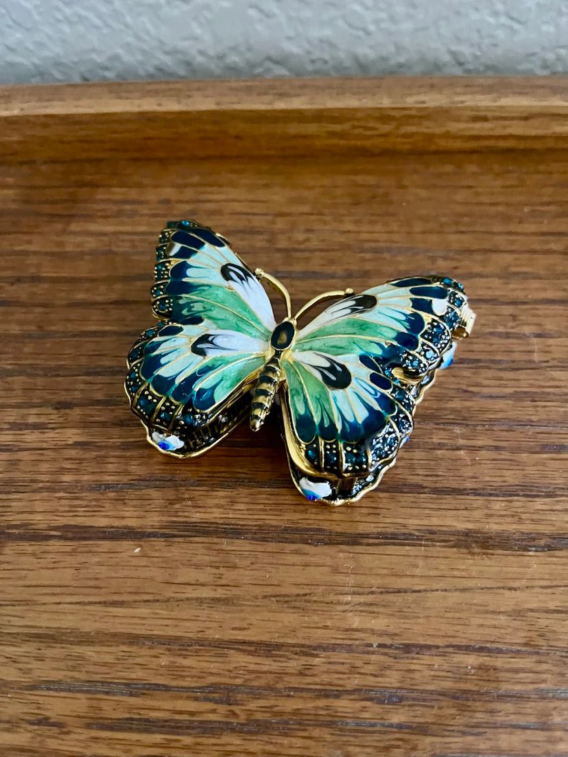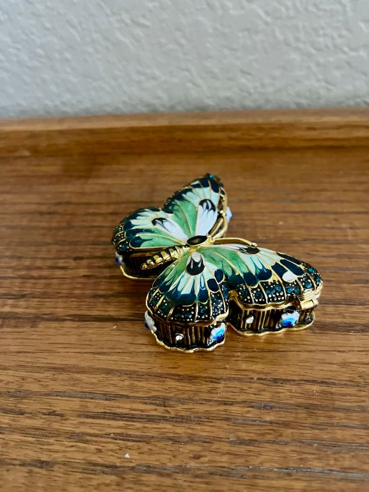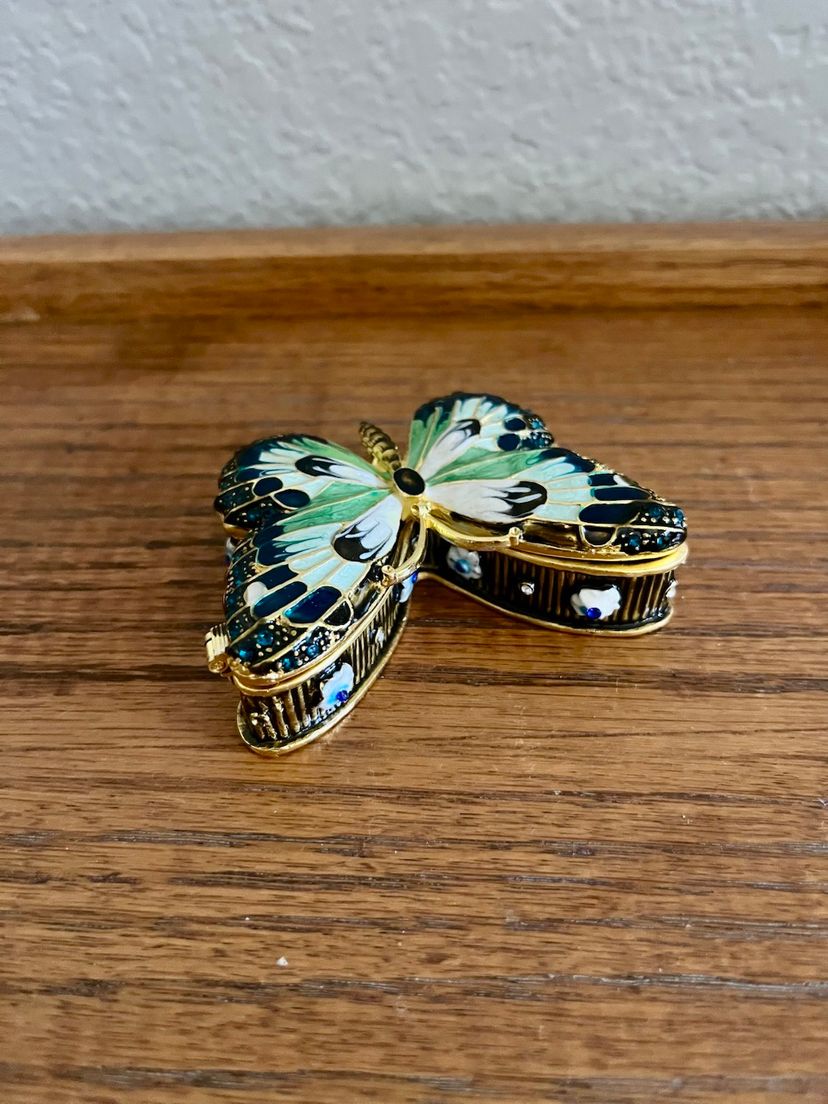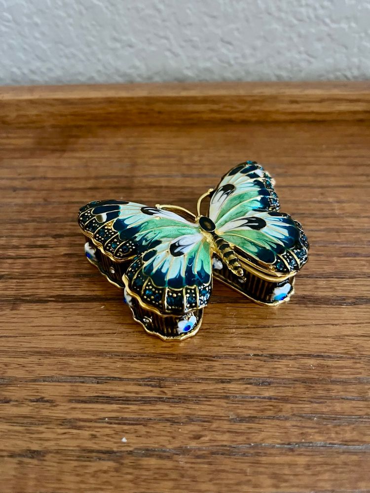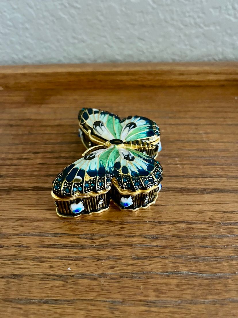 Hinged butterfly trinket box with magnetic closure. 3” x 2 1/4” Like new condition