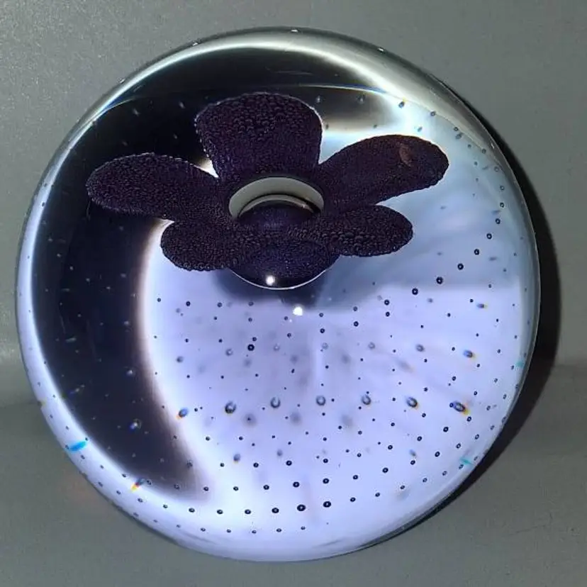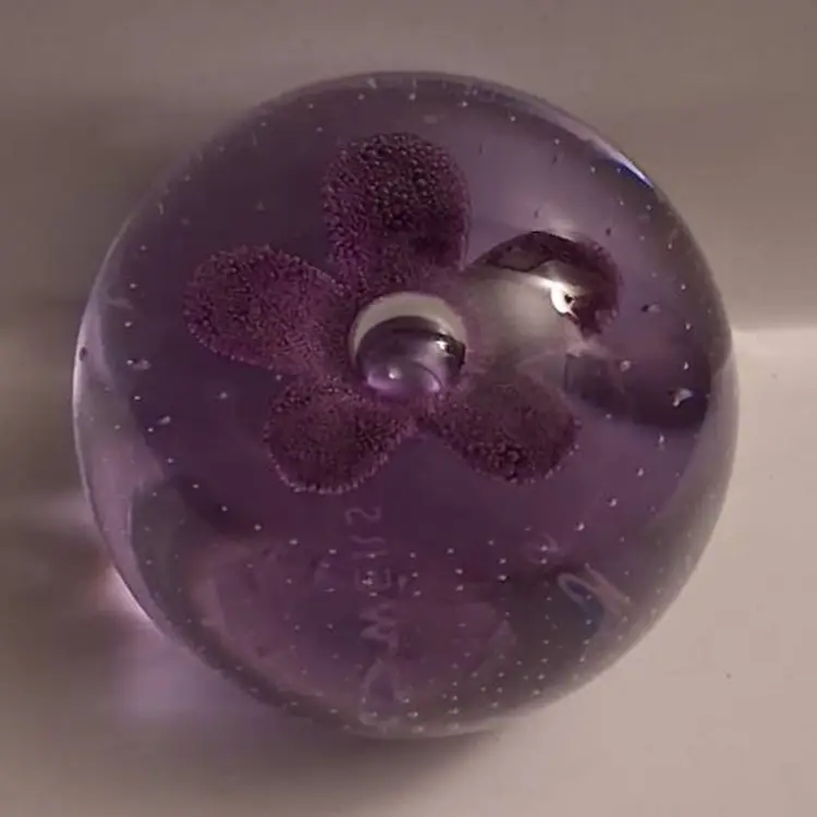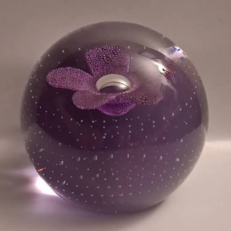 Caithness, Scotland Pop Flowers-Purple, Neodymium Glass Paperweight, NEW IN BOX!