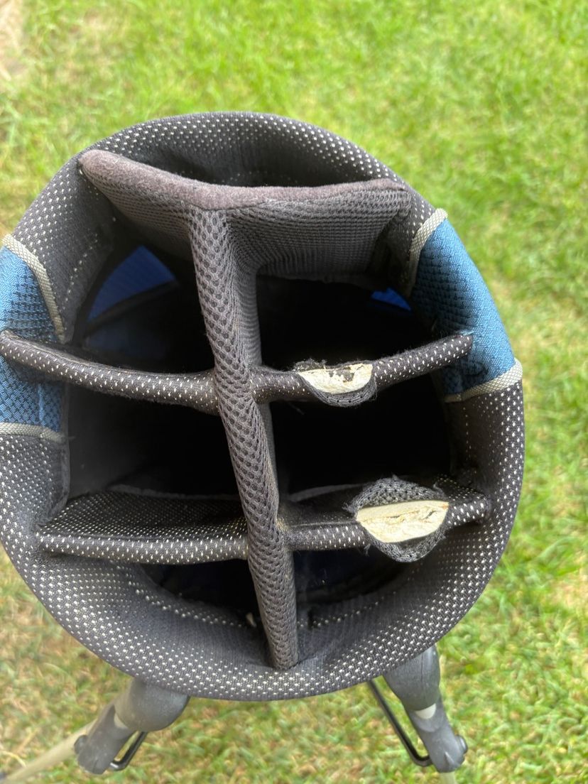 I want to describe this bag honestly and with care so you know exactly what to expect: • Condition: The bag is in good used condition overall. It shows normal wear from use, including some cosmetic scuffing and light fabric wear near the dividers, but nothing that affects function. • Functionality: All zippers and pockets work smoothly, including the apparel pocket, valuables pouch, and ball pocket. The stand mechanism is strong and stable, and both legs extend and retract properly. • Storage & Design: The 7-way top provides plenty of room for clubs, helping prevent tangling. There’s also a padded dual shoulder strap and a rubber carry handle for easy transport