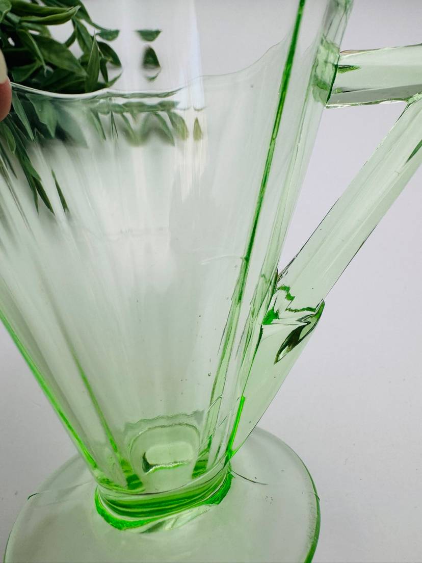 This is a Cambridge uranium glass creamer only. Great shape. See photos, a crescent shaped mark on one side(manufacturing error) is felt outside but is not a crack.
