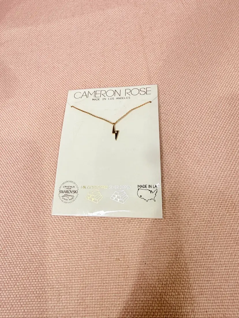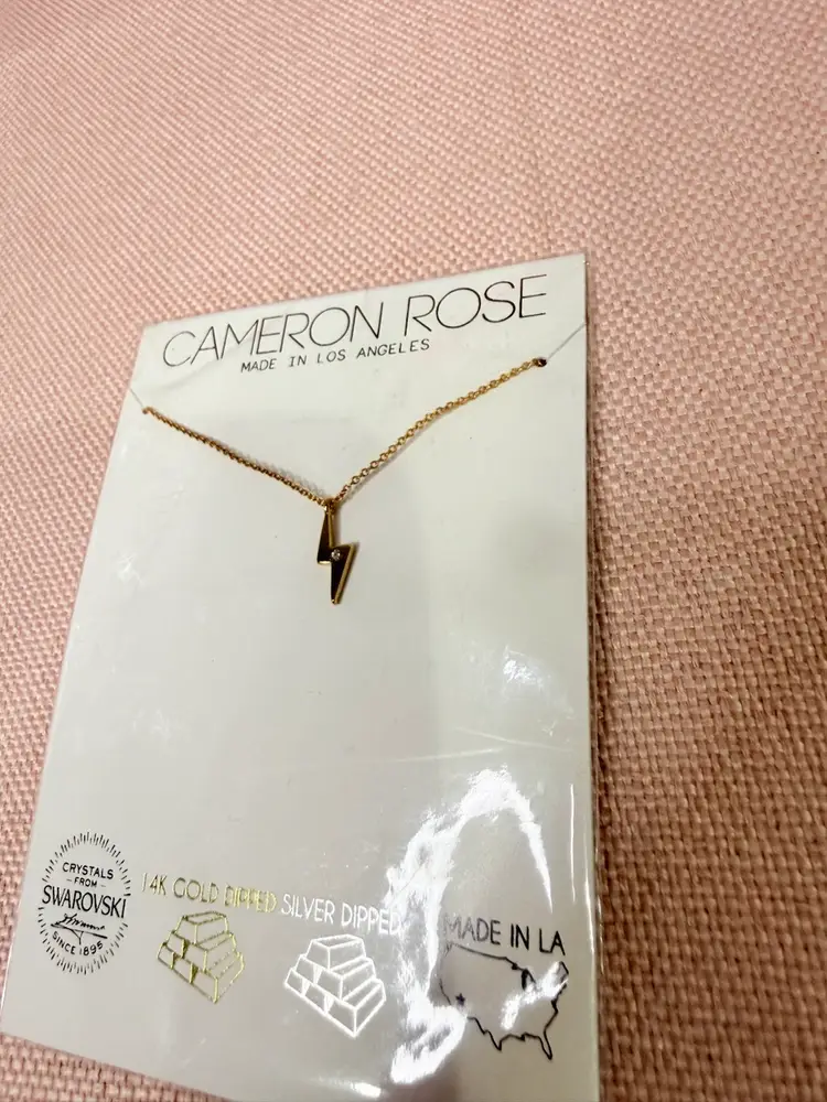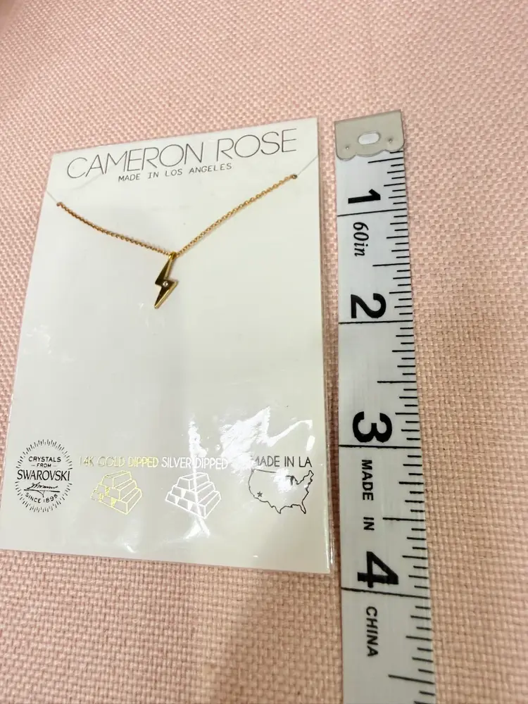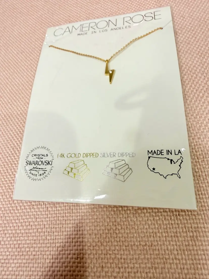Style: Pendant Type: Necklace Color: Gold Theme: Lightning Bolt Main stone: Swarovski Crystal Material: 14K Gold Dipped, Silver Dipped Country of origin: United States Features: Sparkling Occasion: Any