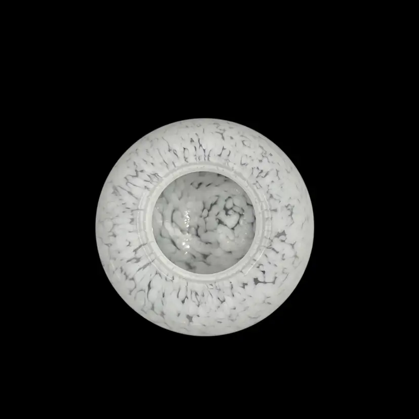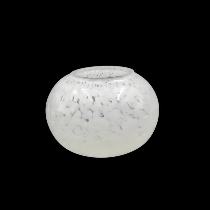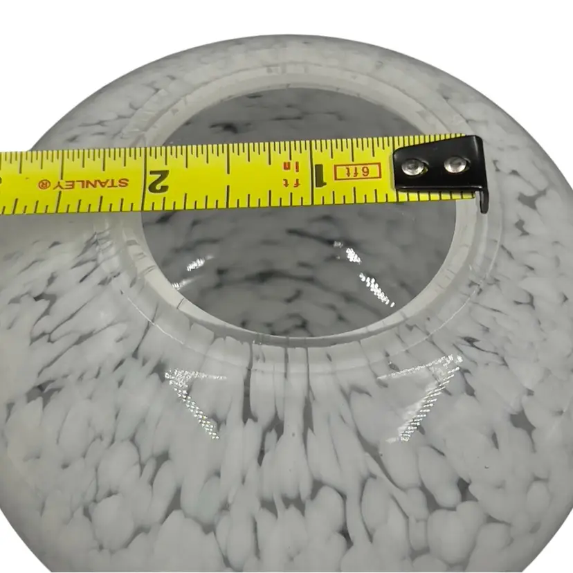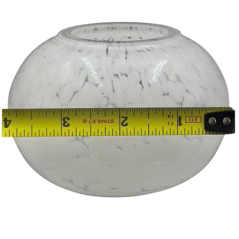 👉4x3.25” Art Glass 3”Opening White Spatter 👉No Chips or Cracks 👉Review Photos for Best Condition Description 👉Sold as Shown