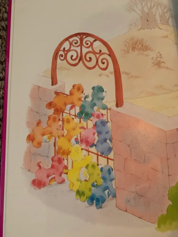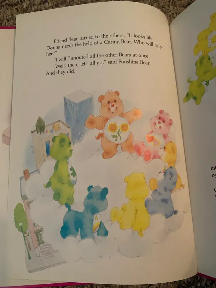 Name written inside, in good shape though two page has some glue (?) inside. There are no Care Bears on the two pages with the glue.