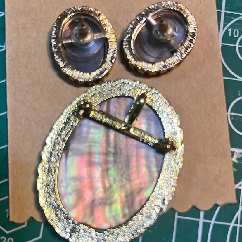 Carved Abalone Shell Guardian Angel Necklace and/or Brooch And Earrings By Set