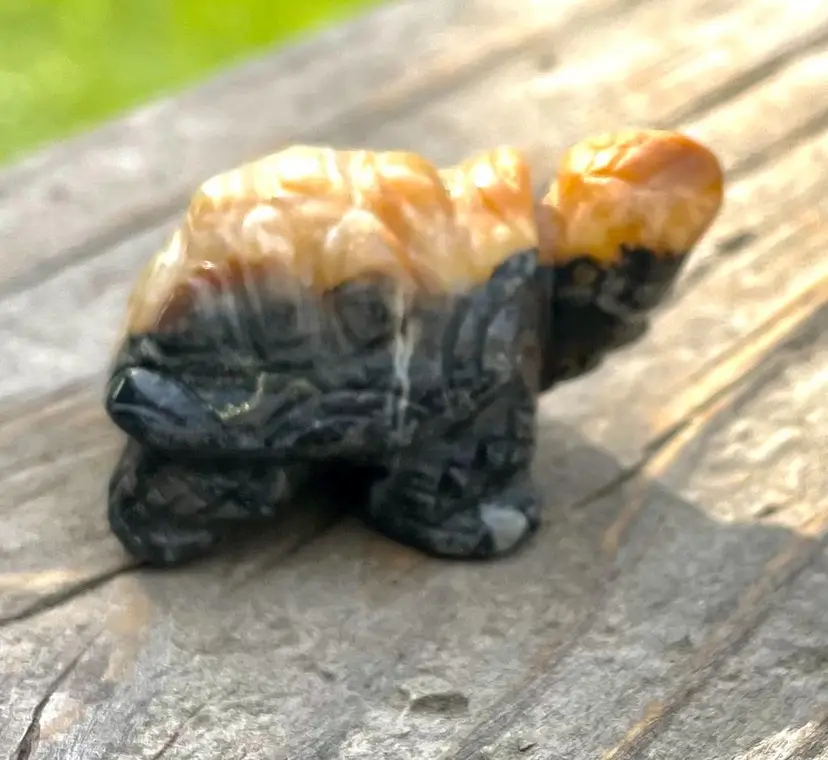 This little guy is a carved Amazonite turtle. 30 grams. Approximately 1 inch tall, 1 1/2 inches long and 1 1/4 inches wide.