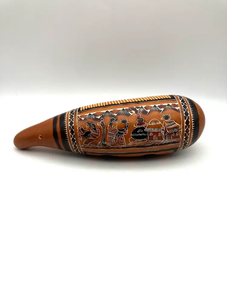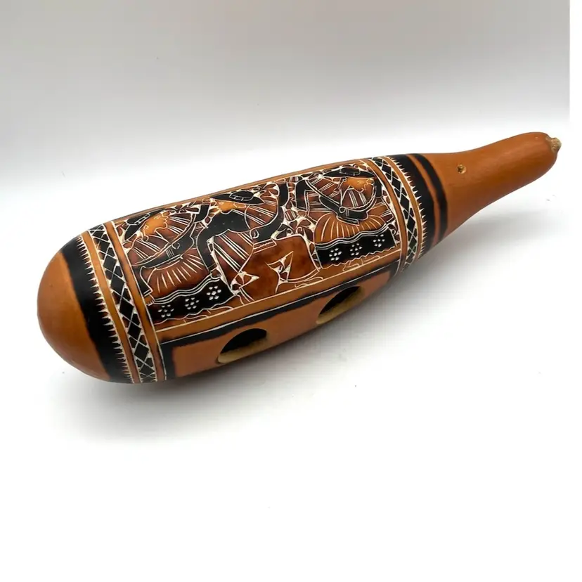Excellent condition. Missing scraper but any stick would work. Holes are where fingers go when playing. I will try to demonstrate; there are many YouTube videos on how to play a guiro. π measures 11.5β x 3.125β