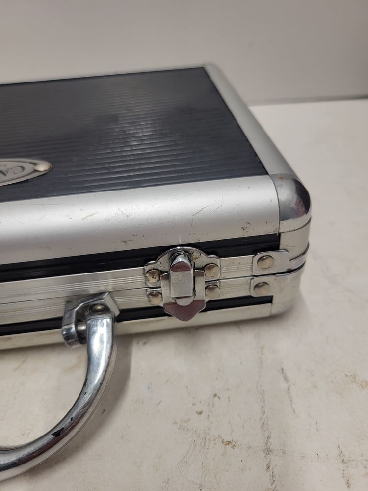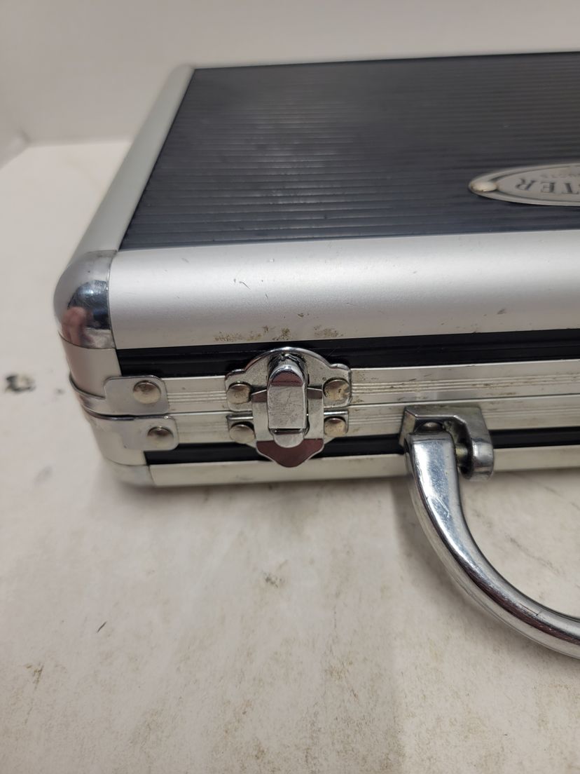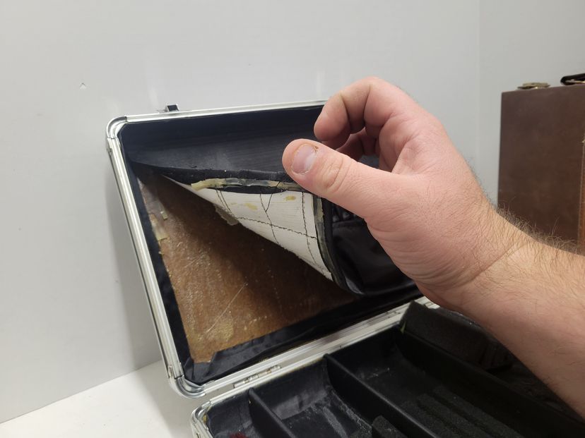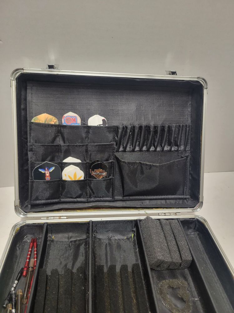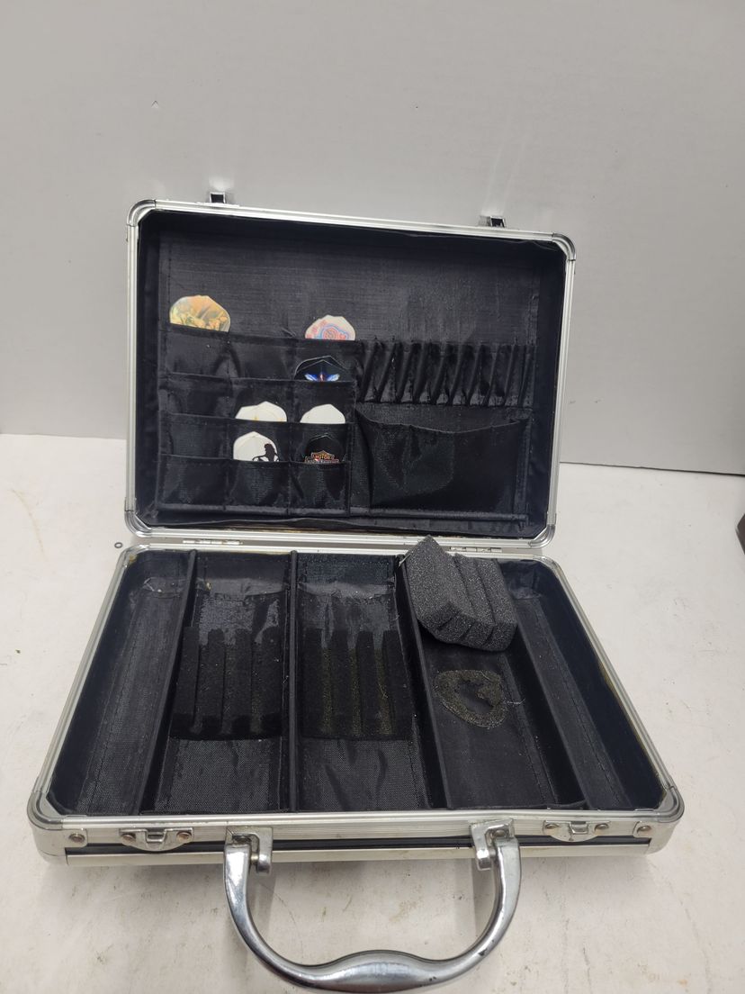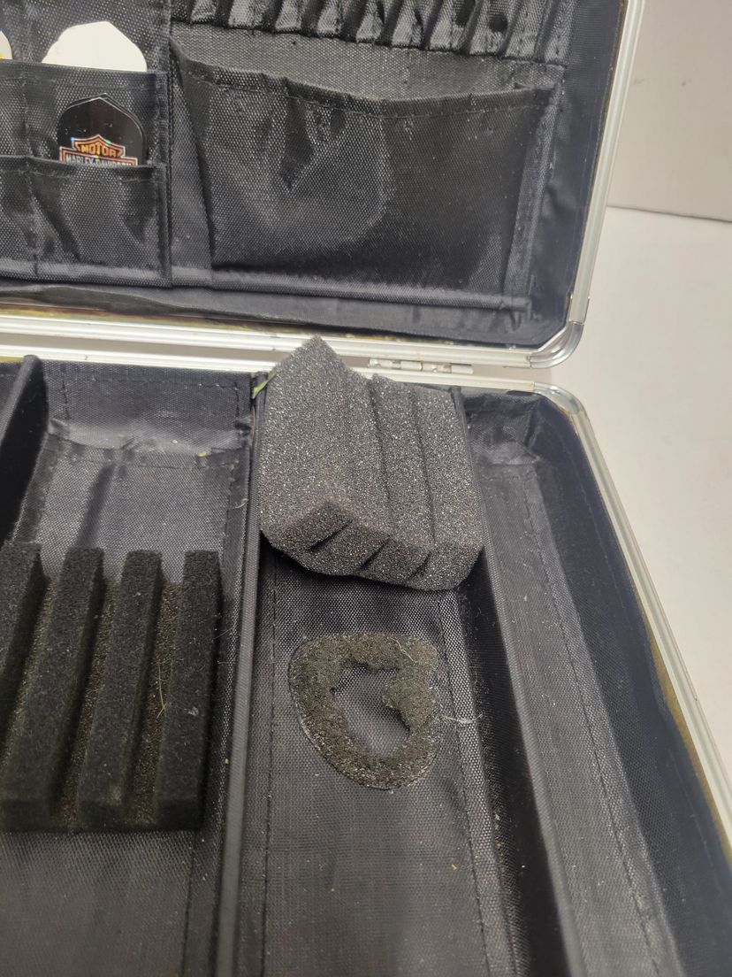 The case is in rough shape, the latches have been bent but shuts fine and latches. Stays shut nicely. Inside is the major issue with the back wall where the fins are is coming off. Along with the issue where the foam is off in pictures Please see pictures for condition Sold as is