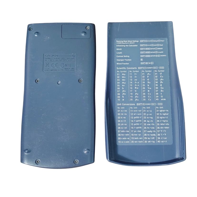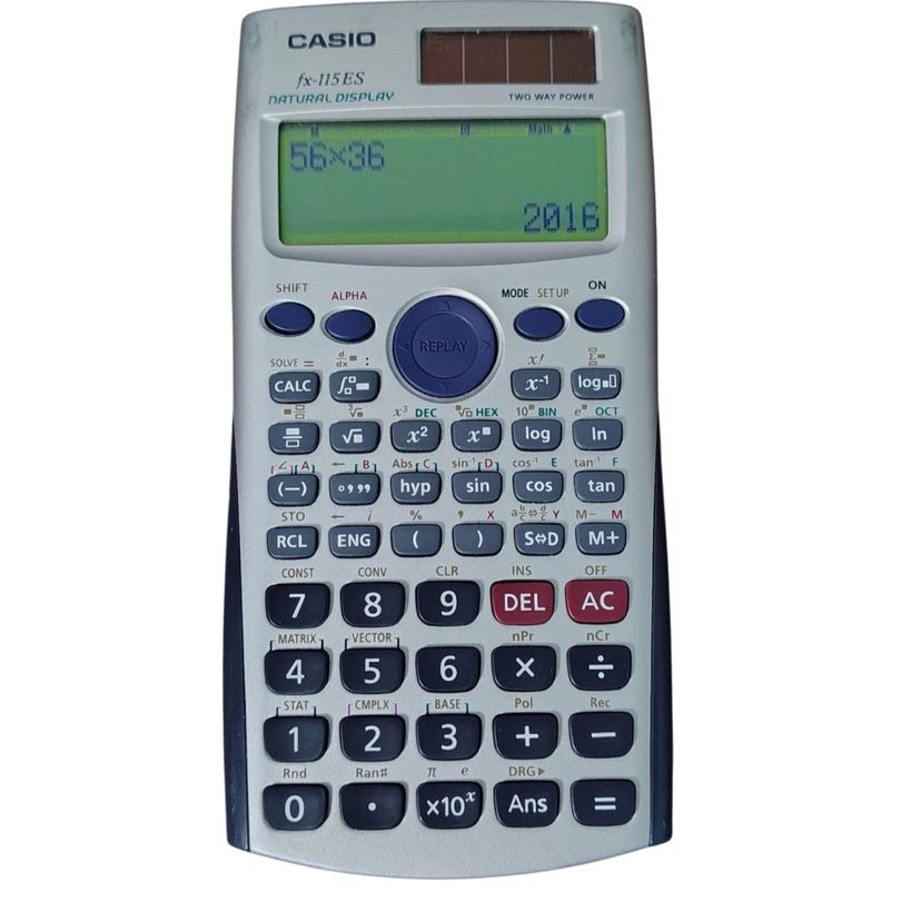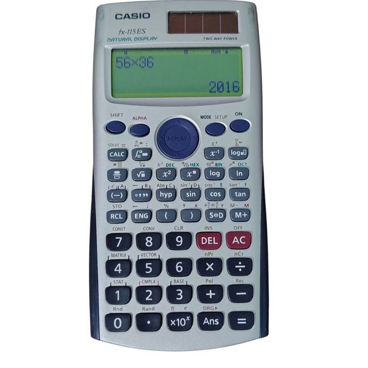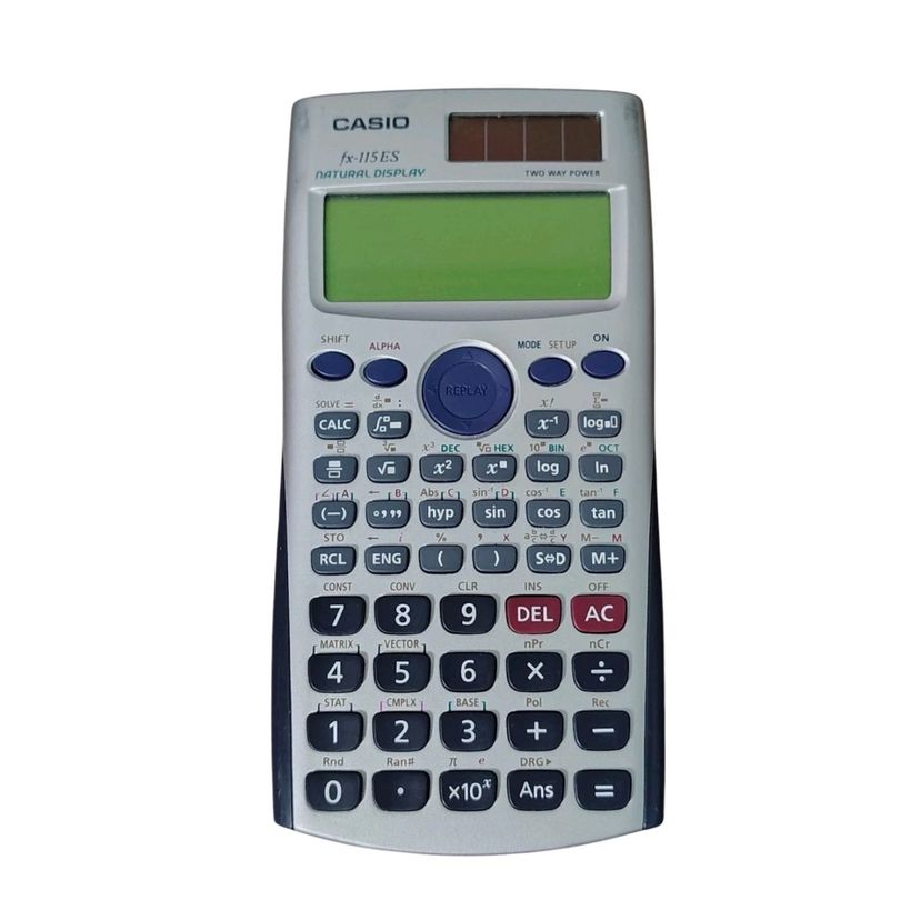 Brand: Casio Model: FX-115ES Plus Type: Scientific Calculator Condition: Tested and working Cosmetic Notes: Light wear to finish from normal use; no cracks, chips, or missing buttons Power Source: Solar and battery dual power Display: Natural Textbook Display for easy-to-read equations Functions: Over 280 functions including statistics, fractions, and complex numbers