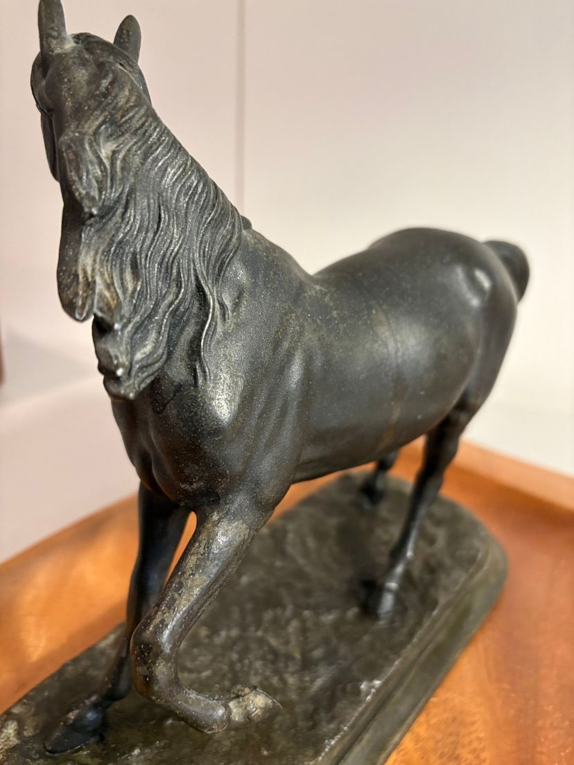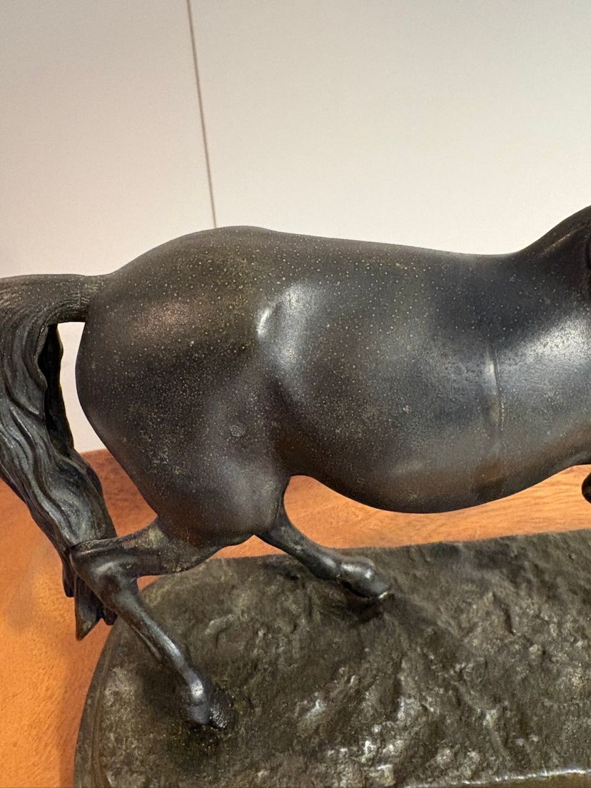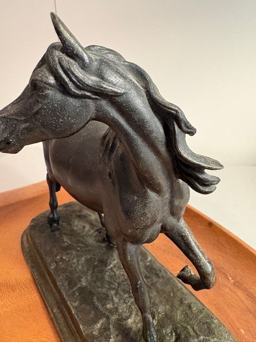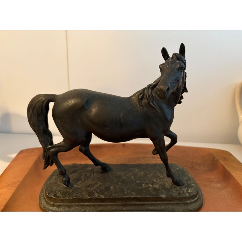 The Cast Bronze Horse is a beautifully crafted sculpture of a horse, made of high-quality bronze material. The detailed and lifelike representation of the horse showcases intricate craftsmanship and artistic flair. This piece would be a stunning addition to any collection or as a unique focal point in any space, adding a touch of elegance and sophistication to its surroundings. It measures 8 1/2” tall and 9 1/2” in length.