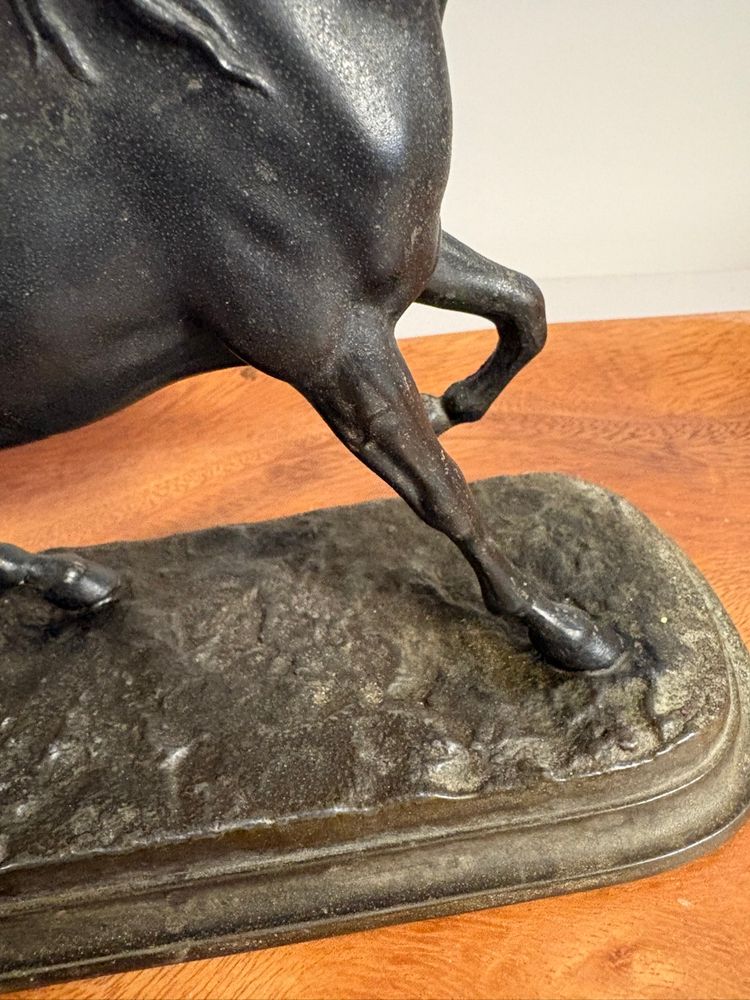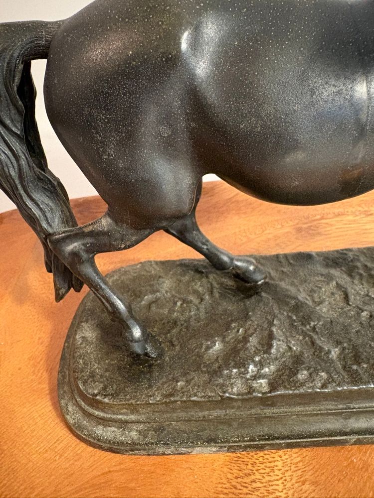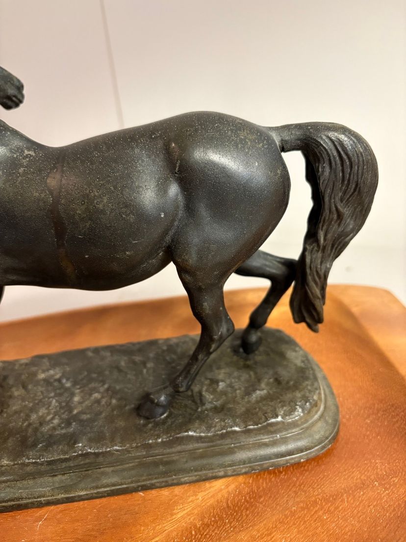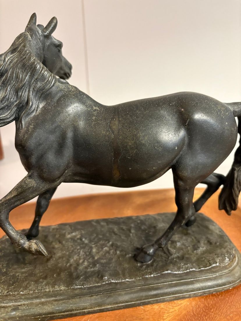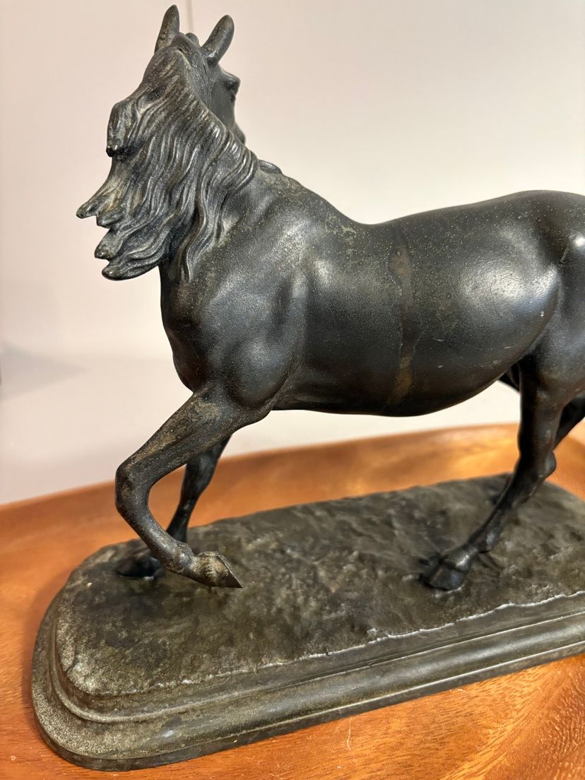 The Cast Bronze Horse is a beautifully crafted sculpture of a horse, made of high-quality bronze material. The detailed and lifelike representation of the horse showcases intricate craftsmanship and artistic flair. This piece would be a stunning addition to any collection or as a unique focal point in any space, adding a touch of elegance and sophistication to its surroundings. It measures 8 1/2” tall and 9 1/2” in length.