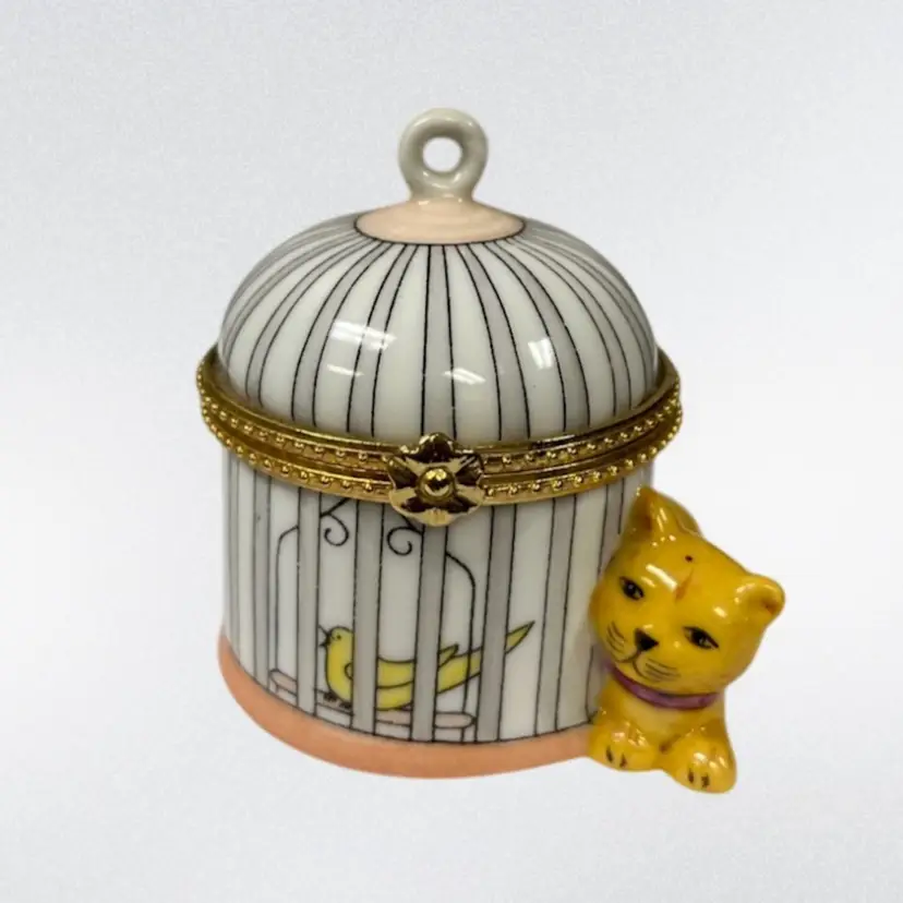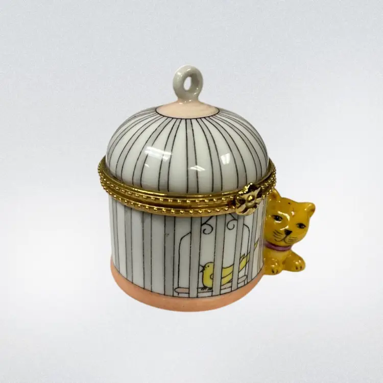 Cute trinket box! For cat and bird lovers! No chips or cracks. Approx: 2.75”h x 2.5” w