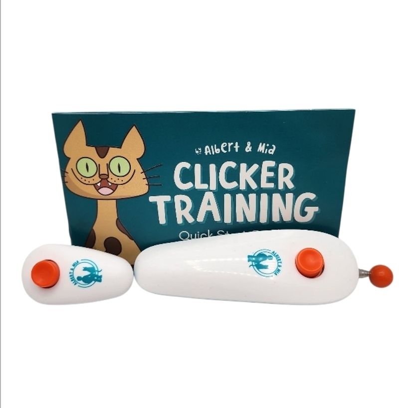 THE 4 PIECE CLICKER TRAINING KIT FROM ALBERT AND MIA IS IN NEW / OPEN BOX CONDITION. THE ORIGINAL MANUFACTURERS BOX IS NOT INCLUDED. ALL ITEMS IN THE KIT ARE IN NEW CONDITION. THIS KIT WAS USED AS A DISPLAY MODEL, SO IT MAY HAVE SOME SIGNS OF BEING IN THE OPEN, LIKE SMUDGES AND/ OR DUST. PLEASE LOOK AT ALL PHOTOS, THEY ARE OF THE ACTUAL ITEM YOU WILL RECEIVE.
