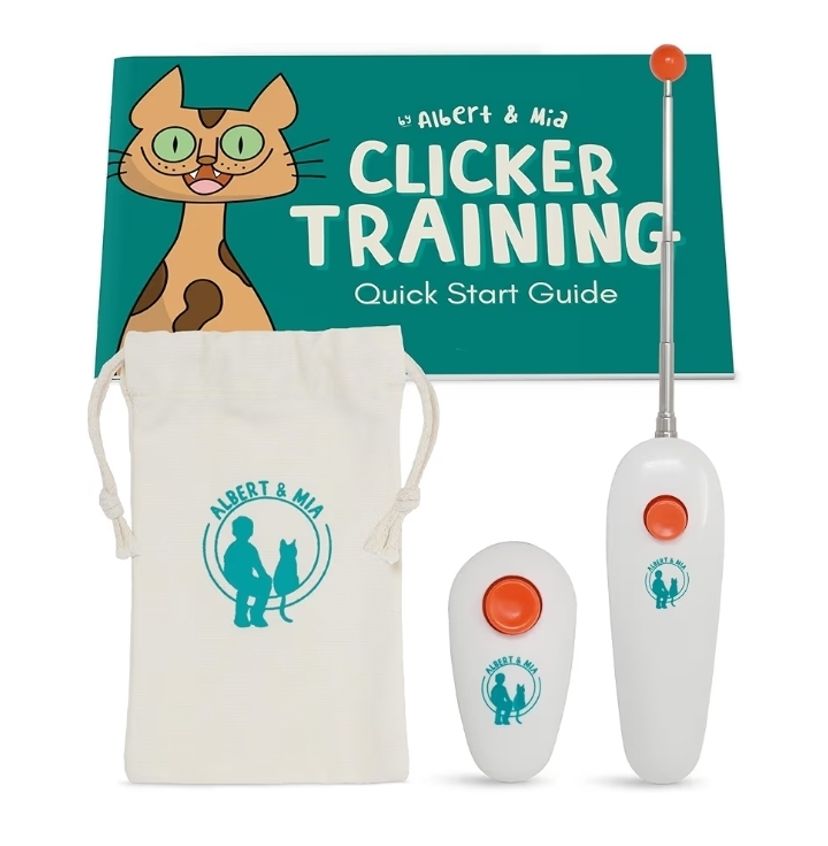 ALL-INCLUSIVE CAT TRAINING KIT: Crafted to simplify your cat training journey, our kit brings together a Quiet Clicker, Target Stick Clicker, Treats Pouch, and a comprehensive Cat Clicker Training Start Guide — everything you need to harness your feline's full potential.