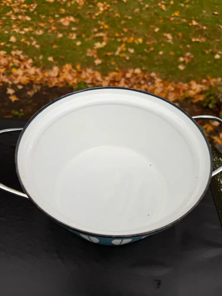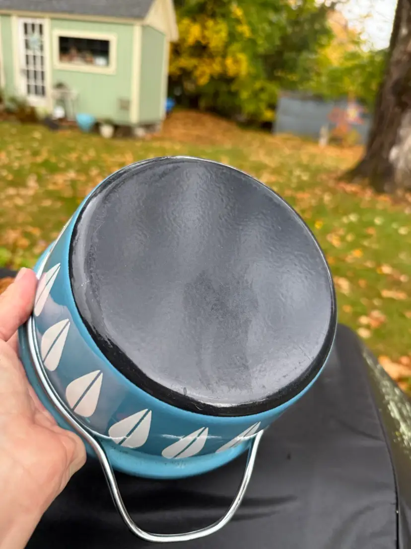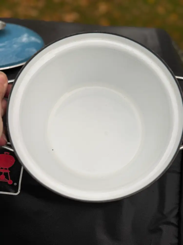 2 quart Had a small pin sized chip on the inside No other issues No stains No dishwasher damage See all photos