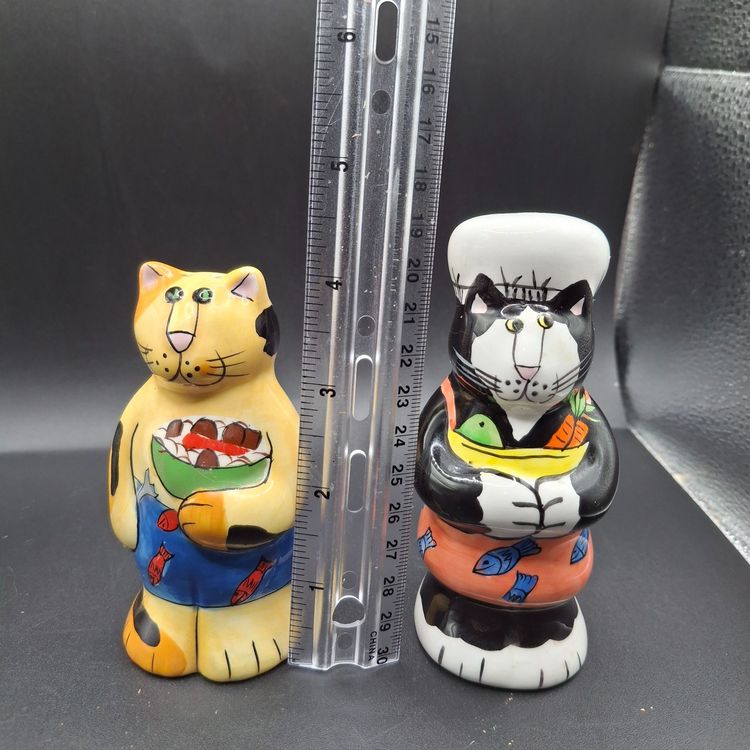 • Hand-painted ceramic • Includes chef and gardener designs • Ideal for kitchen decor • 4" tall • Vibrant colors