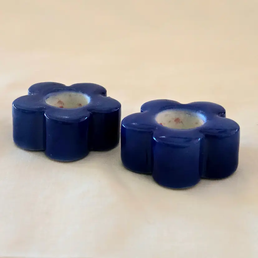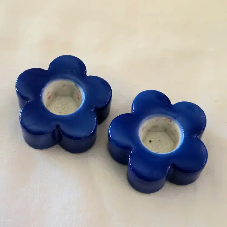 Ceramic Candlestick Holders Funny Design W. Germany miniature set of 2 with candles