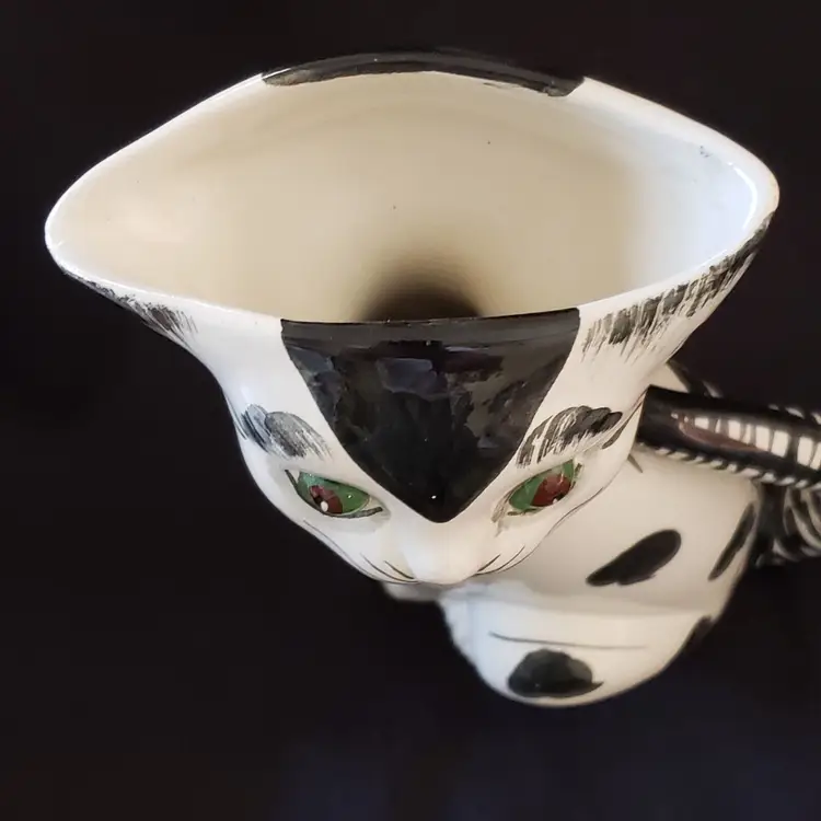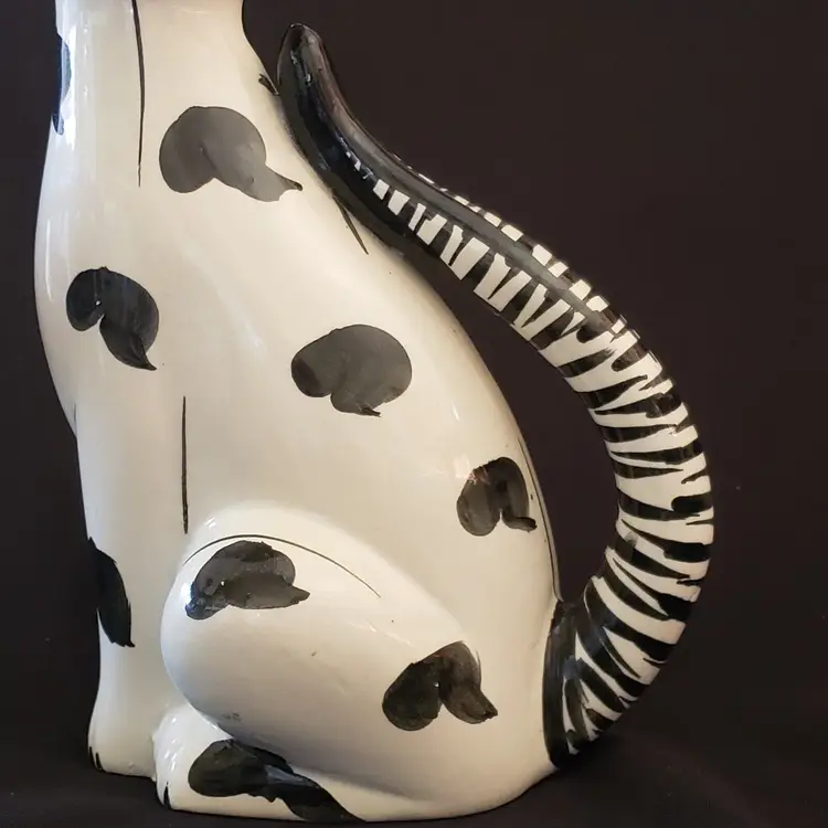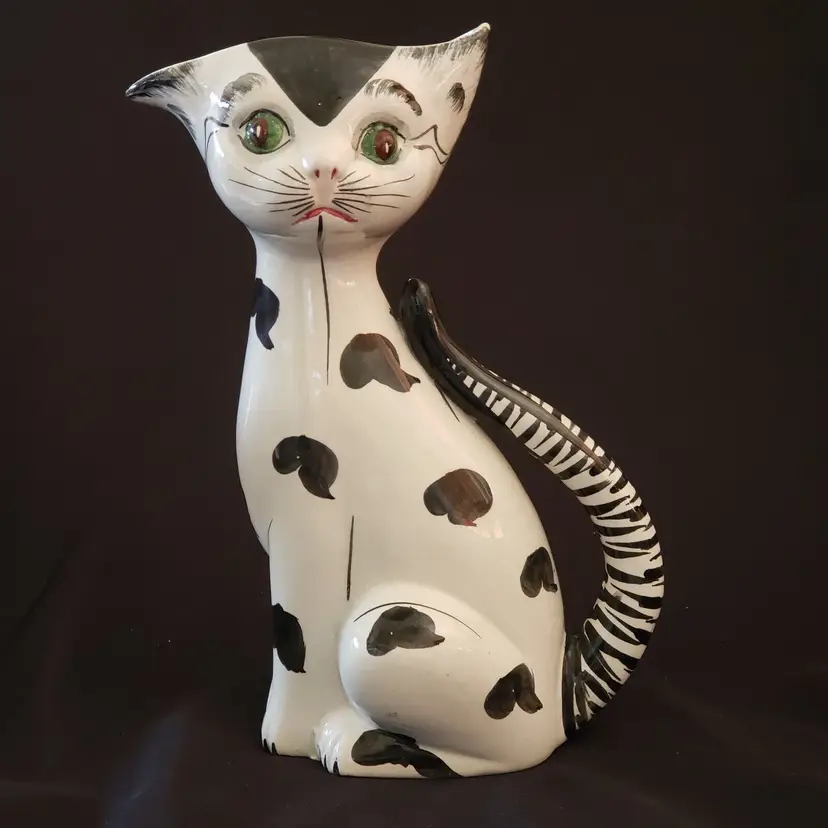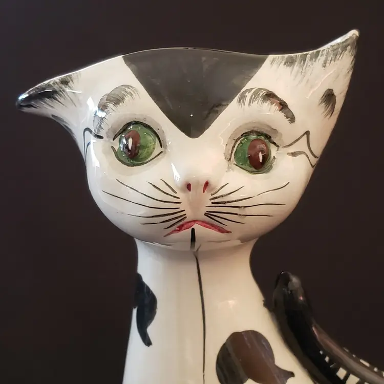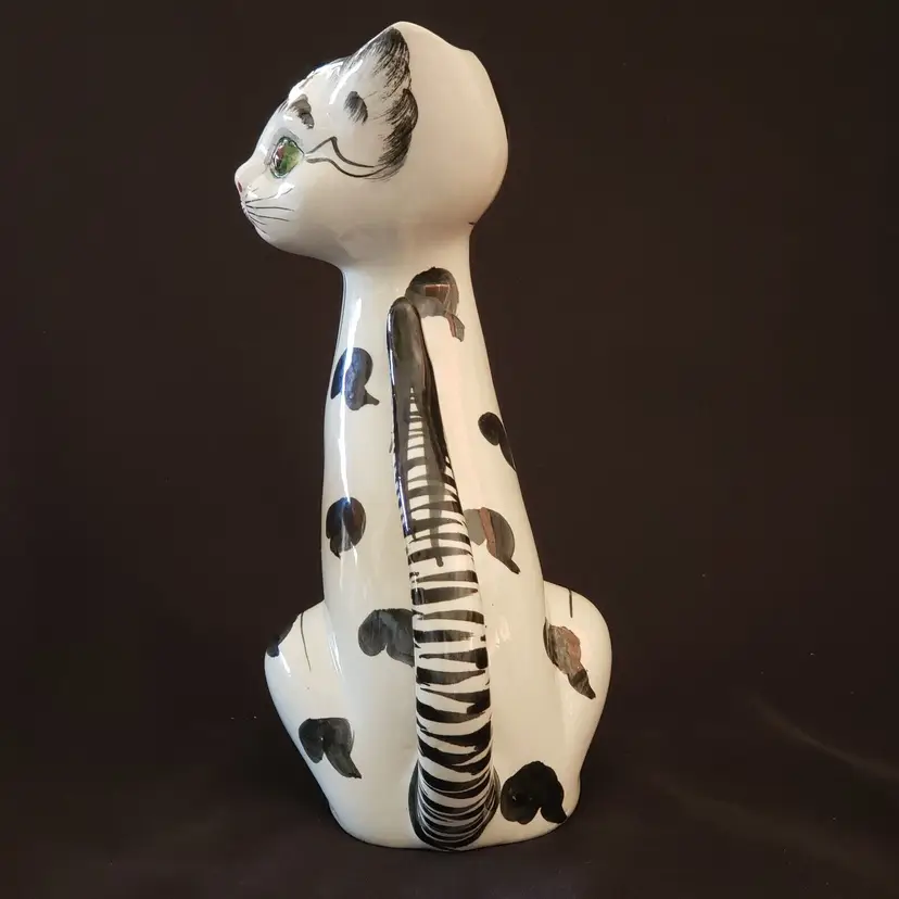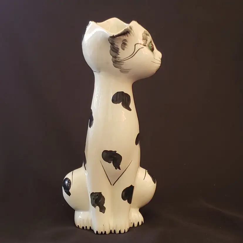 Vintage Ceramic Cat Vase - Handpainted - Made In Italy - 9” Tall Approximately. Used condition with a very slight wobble with tilt, minor amount of crazing, artist flaws with dirt in glaze, small spots of missing or extra glaze, dirt in recesses, etc. with no chips or cracks. Please view all photos as they are part of the description and please ask questions prior to purchase when possible.