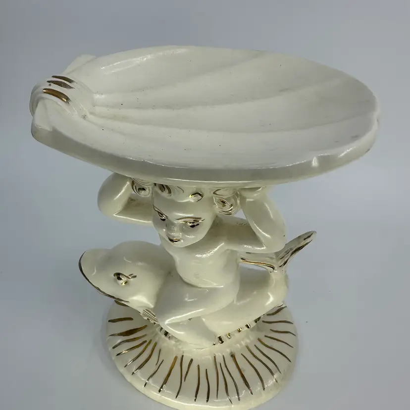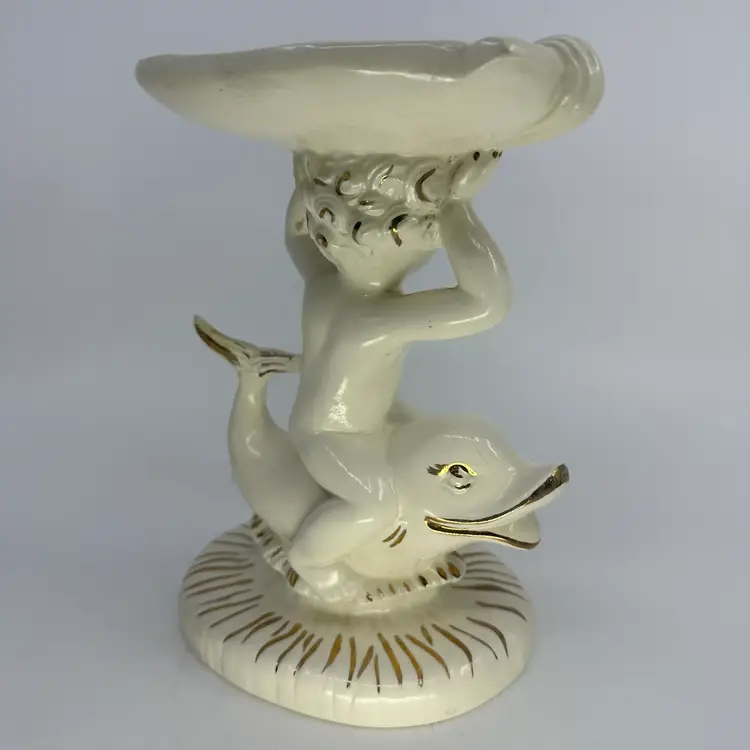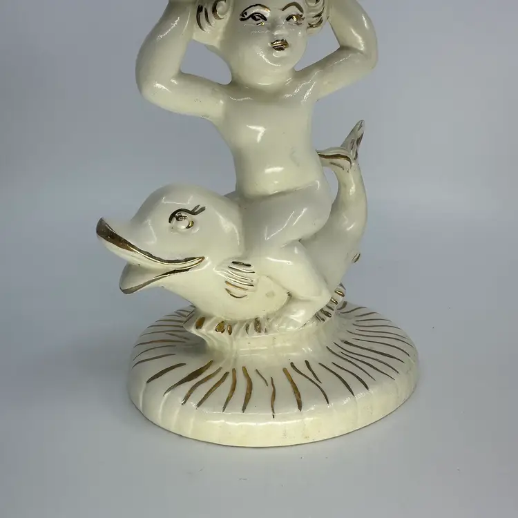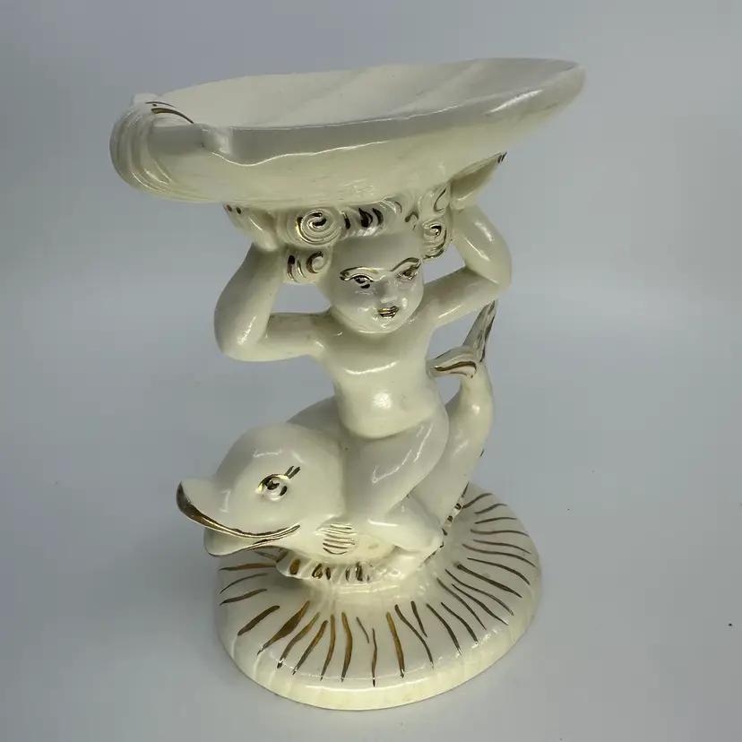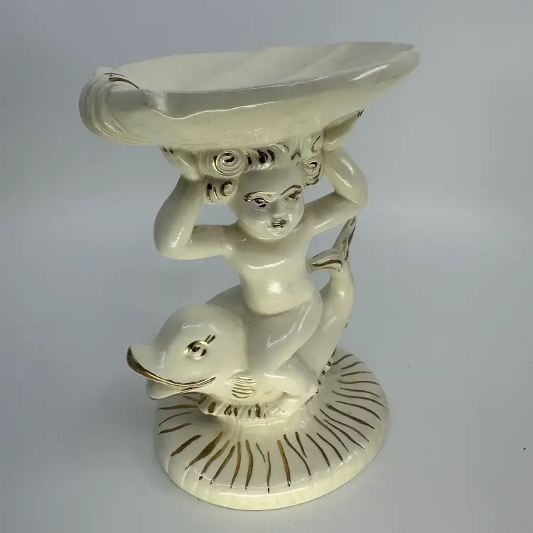 Ceramic Cherub Riding Dolphin Soap Dish