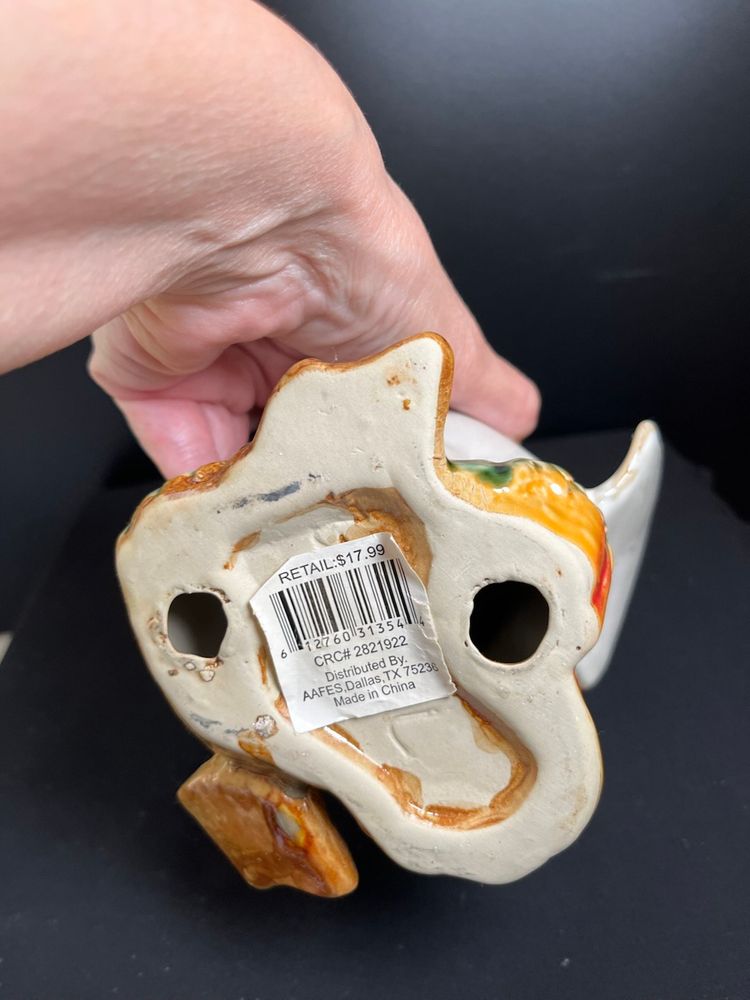Unsure of maker. Retail sticker is on bottom. There are no chips or cracks and is in excellent condition. Measures approx 11" H, 5.5" deep, 5.5" L, 1 1/2 Lbs..