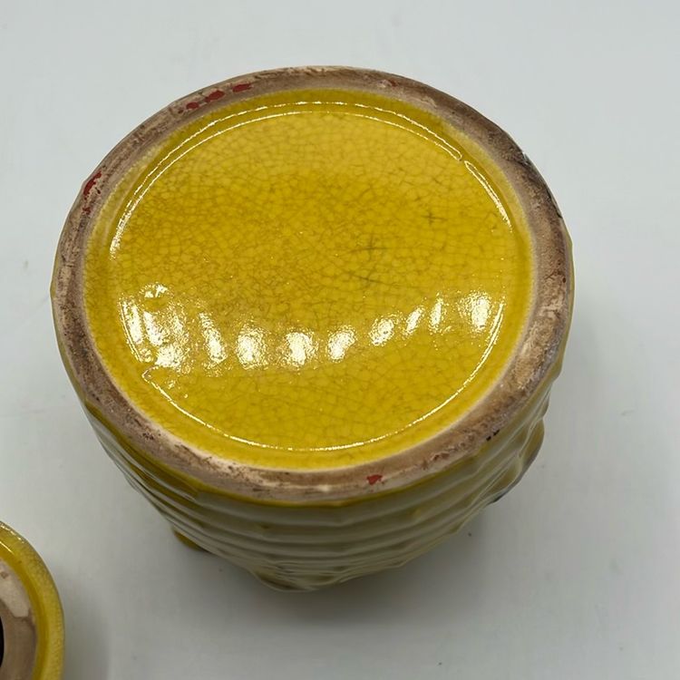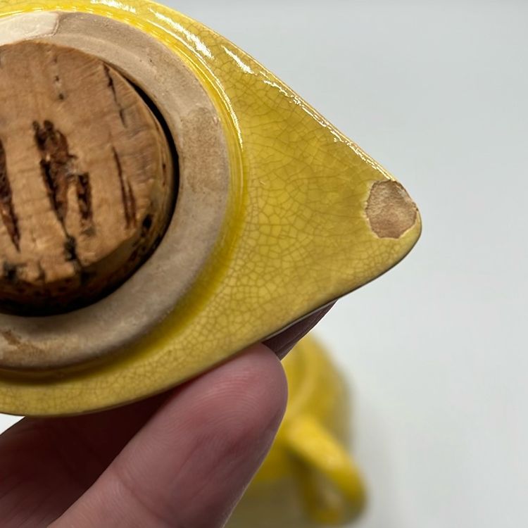 4 3/4” tall dark crazing and chip on underside of lid
