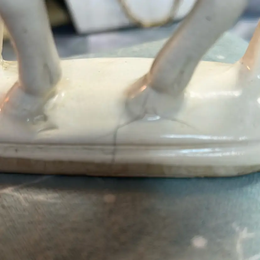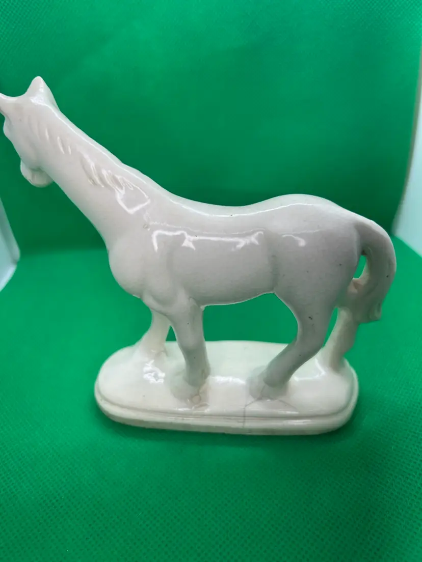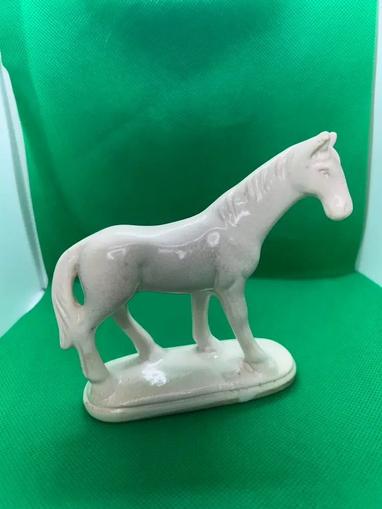Vintage ceramic horse. Likely a hobby piece. Some crazing throughout but doesn’t take the beauty away from this piece. Some cracking on and near the rear hoof. Please see photos as they are part of the description. Thank you for looking!