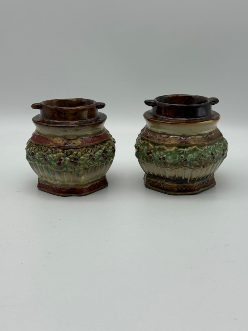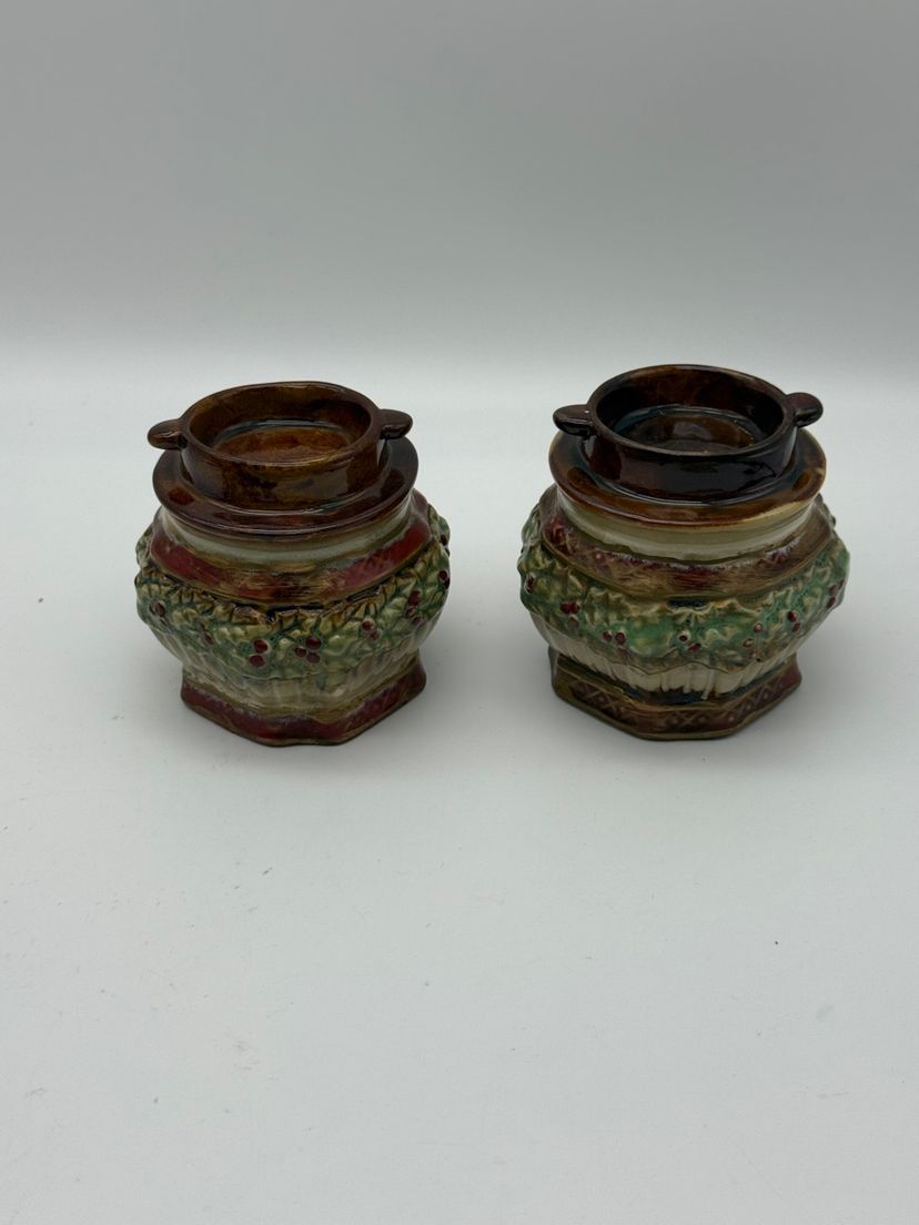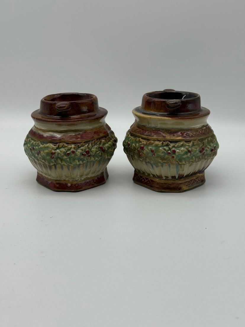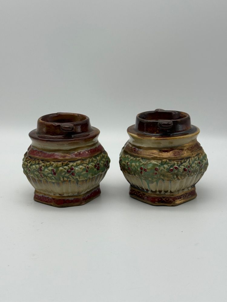 Ceramic Pair Of Christmas Holiday Candle Holders