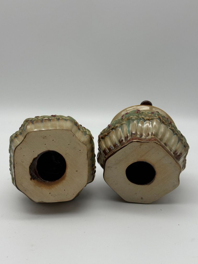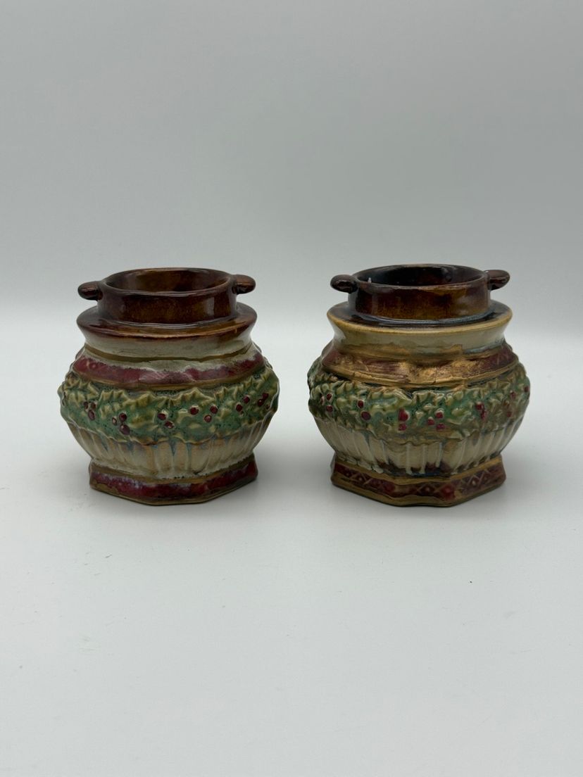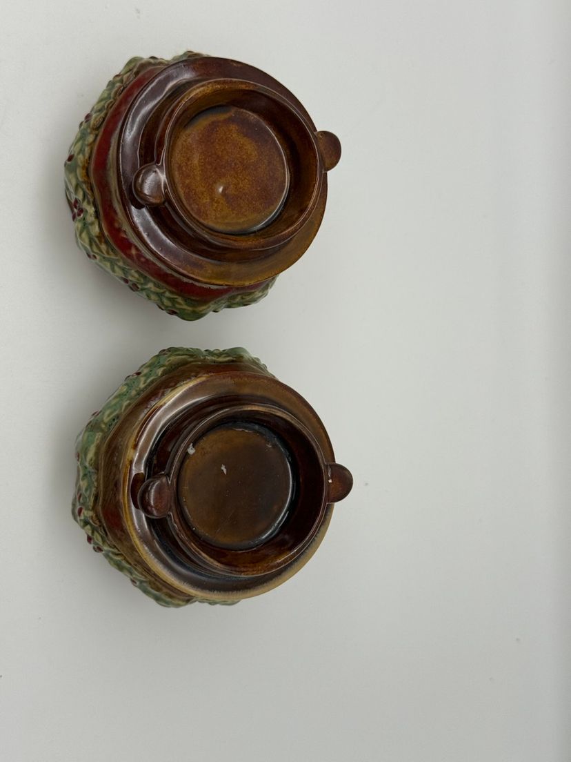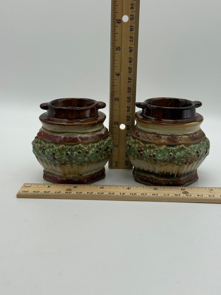 Ceramic Pair Of Christmas Holiday Candle Holders