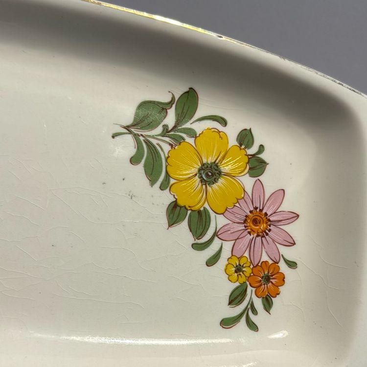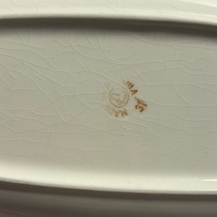 No chips a lot of grazing but nice for age no cracks and some gold trim lose