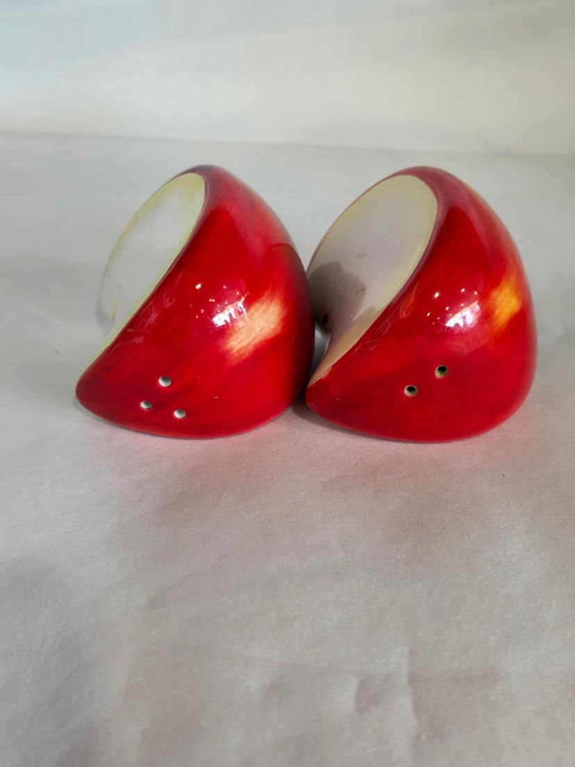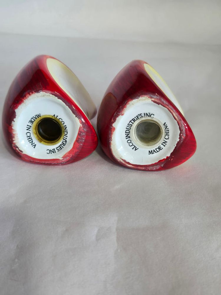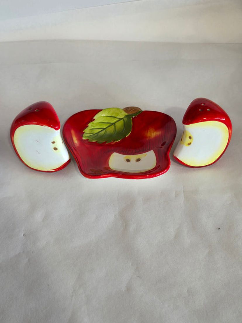 Enhance your dining experience with this elegant ceramic salt and pepper set shaped like apple slices. Designed with precision, each piece fits perfectly on the matching ceramic tray, keeping your seasoning organized and easily accessible. The smooth ceramic finish ensures durability and effortless cleaning, while the charming apple design adds a tasteful accent to any table setting.