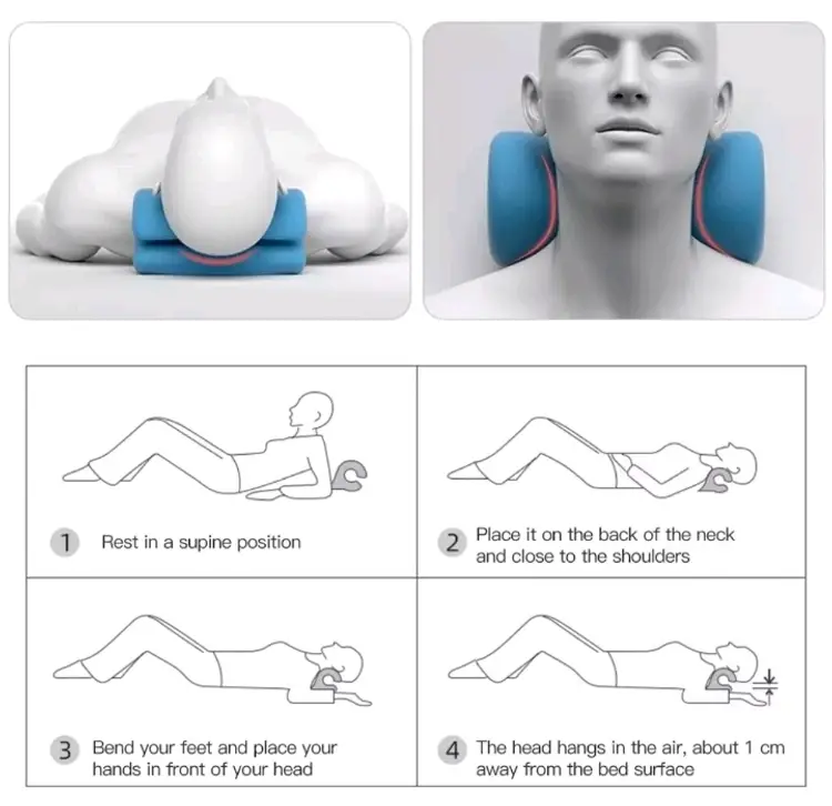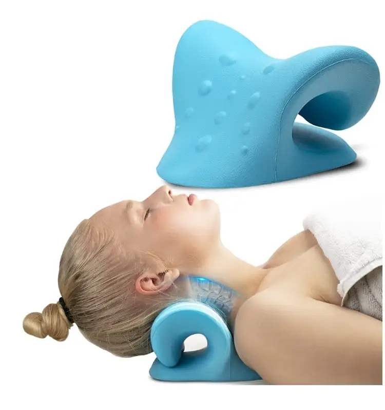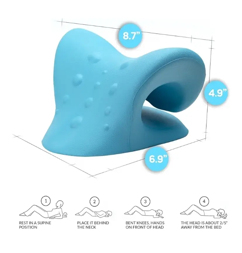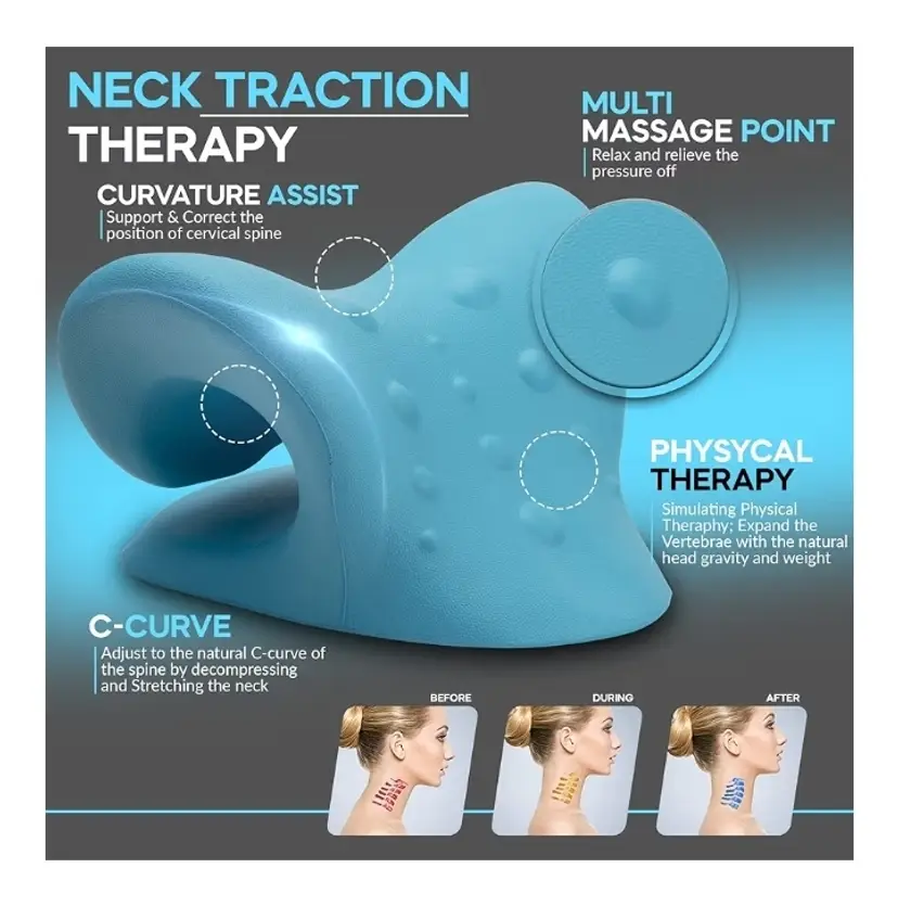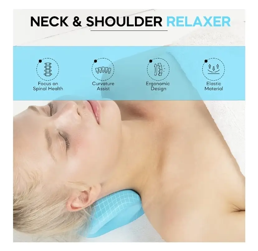 Neck Stretcher Cervical Traction, Neck and Shoulder Relaxer for Pain Relief, Ergonomic Neck Pillow, Neck Hump Corrector, Cervical Spine Alignment, Neck Curve Corrector (Light Blue)
