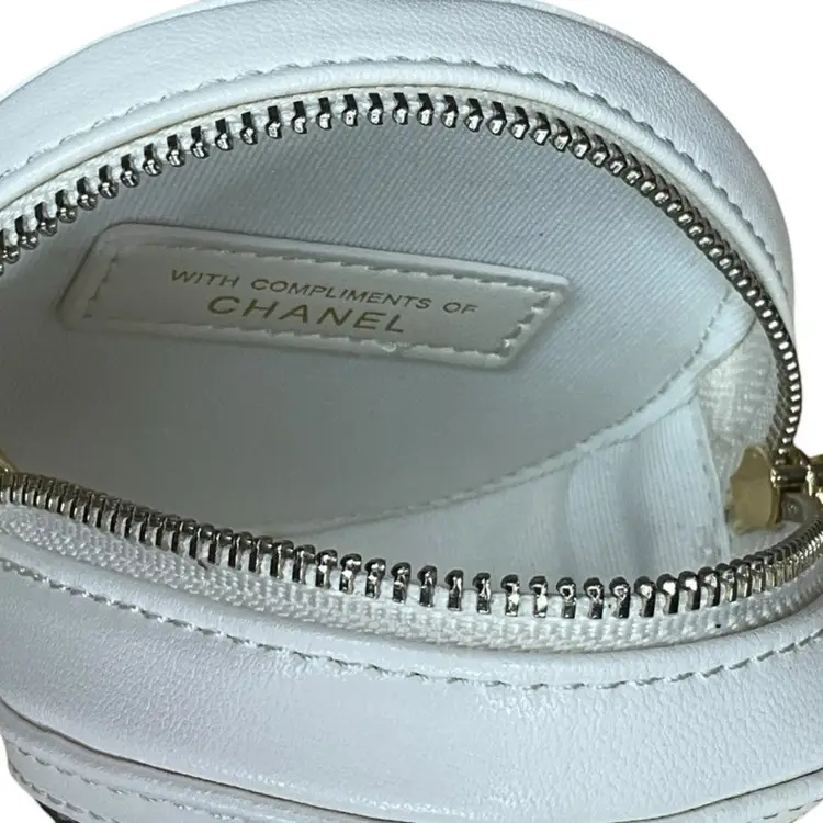 Get ready to elevate your style with this absolutely stunning Chanel Makeup Tweed Quilted Round Filigree Pouch with Chain! This exquisite piece blends classic Chanel elegance with a touch of playful charm, perfect for adding a luxurious accent to any outfit. Crafted from beautiful tweed in a timeless white and black color combination, it features Chanel's iconic quilting and delicate filigree detailing, making it a true work of art. The versatile chain strap allows you to wear it as a chic crossbody, a sophisticated shoulder bag, or simply remove the chain to carry it as a stylish clutch. Ideal for your essentials, whether you're heading out for a special occasion or adding a touch of glamour to your everyday look. This authentic Chanel piece is in excellent pre-owned condition, ready to bring joy to its new owner. Don't miss the chance to own a piece of fashion history!