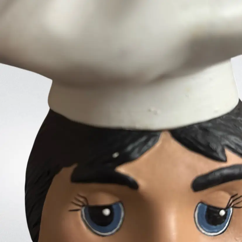 No cracks. Has tiny spot on hair with no paint 10-1/2” t x 4-1/2” w