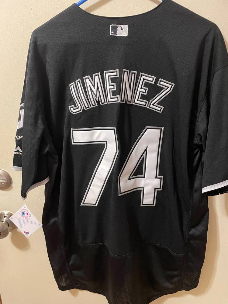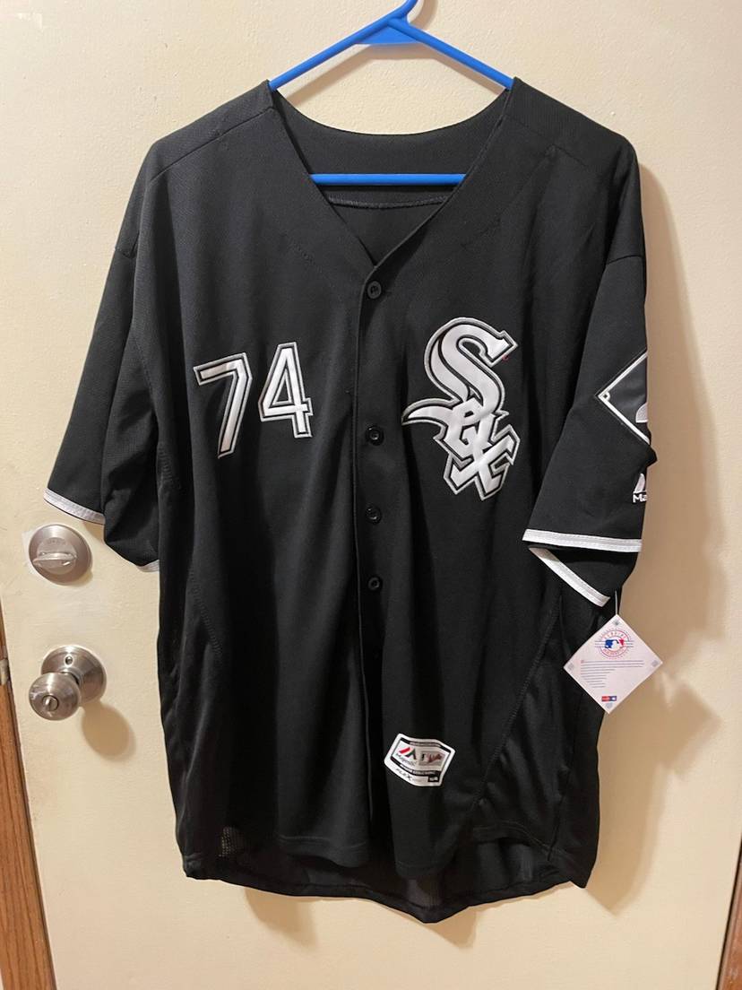 The product is an officially licensed Chicago White Sox Jersey, specifically with the number #74. This jersey is designed for men in size 44 and is in the color black. It is suitable for the Major League Baseball season and is a perfect addition for any fan of the Chicago White Sox team. Made with high-quality materials, this jersey is a must-have for any baseball enthusiast looking to support their favorite team in style.