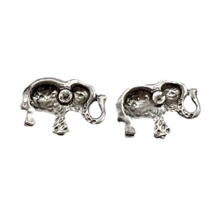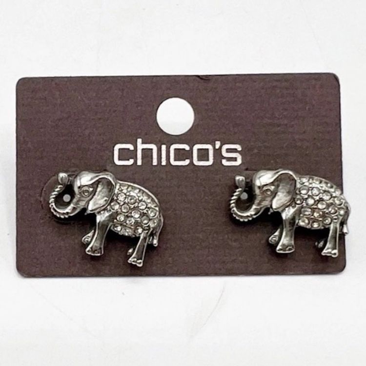 Chico's Silver Tone Rhinestone Elephant Studded Post Earrings Pierced Pair NEW .75"