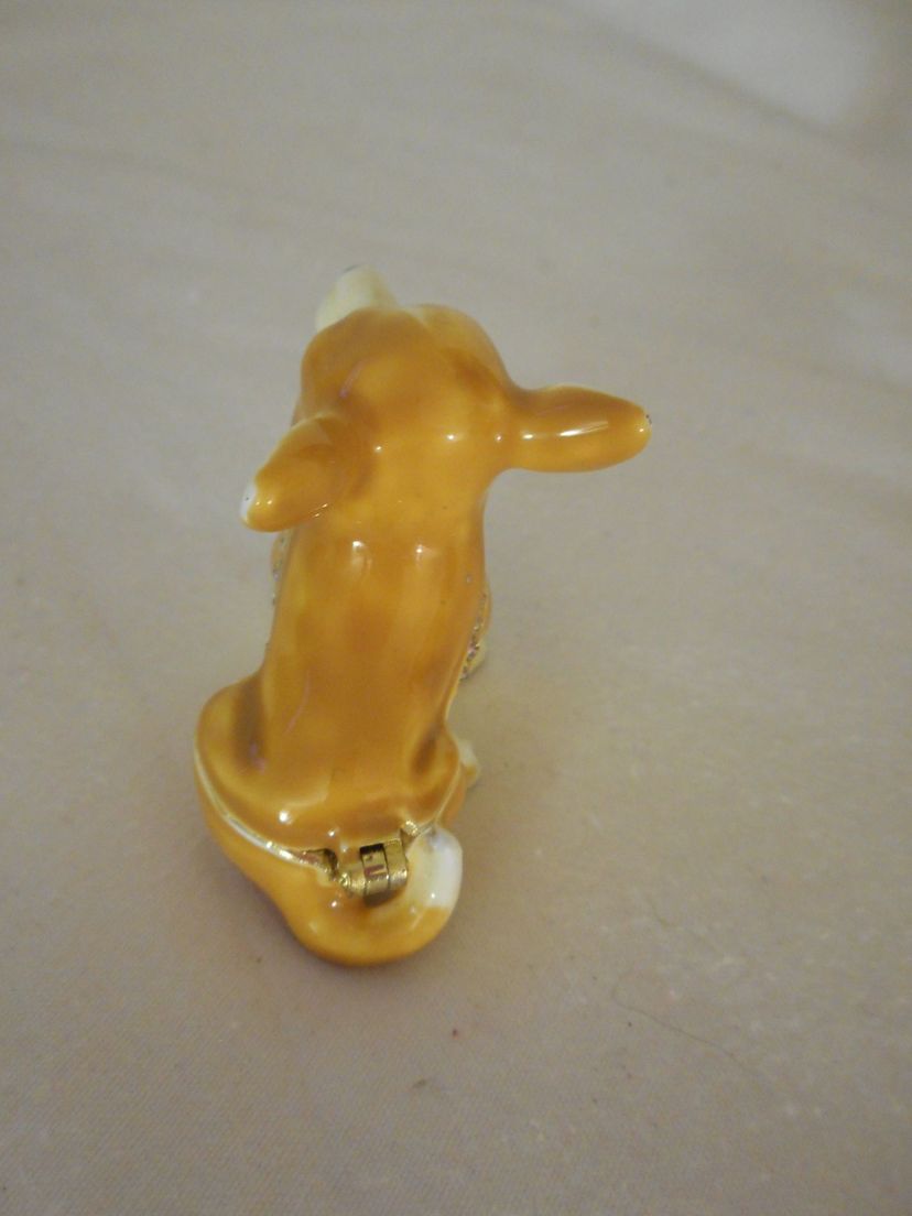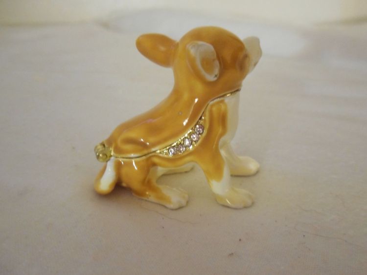 Chihuahua Dog Pewter Enamel Bejeweled Hinged Miniature Trinket Box - Estate Find